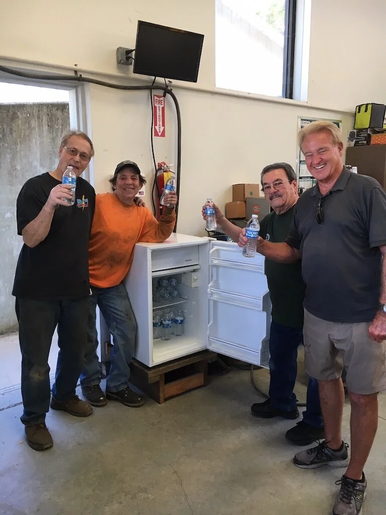 The shop team toast at the end of a warm day