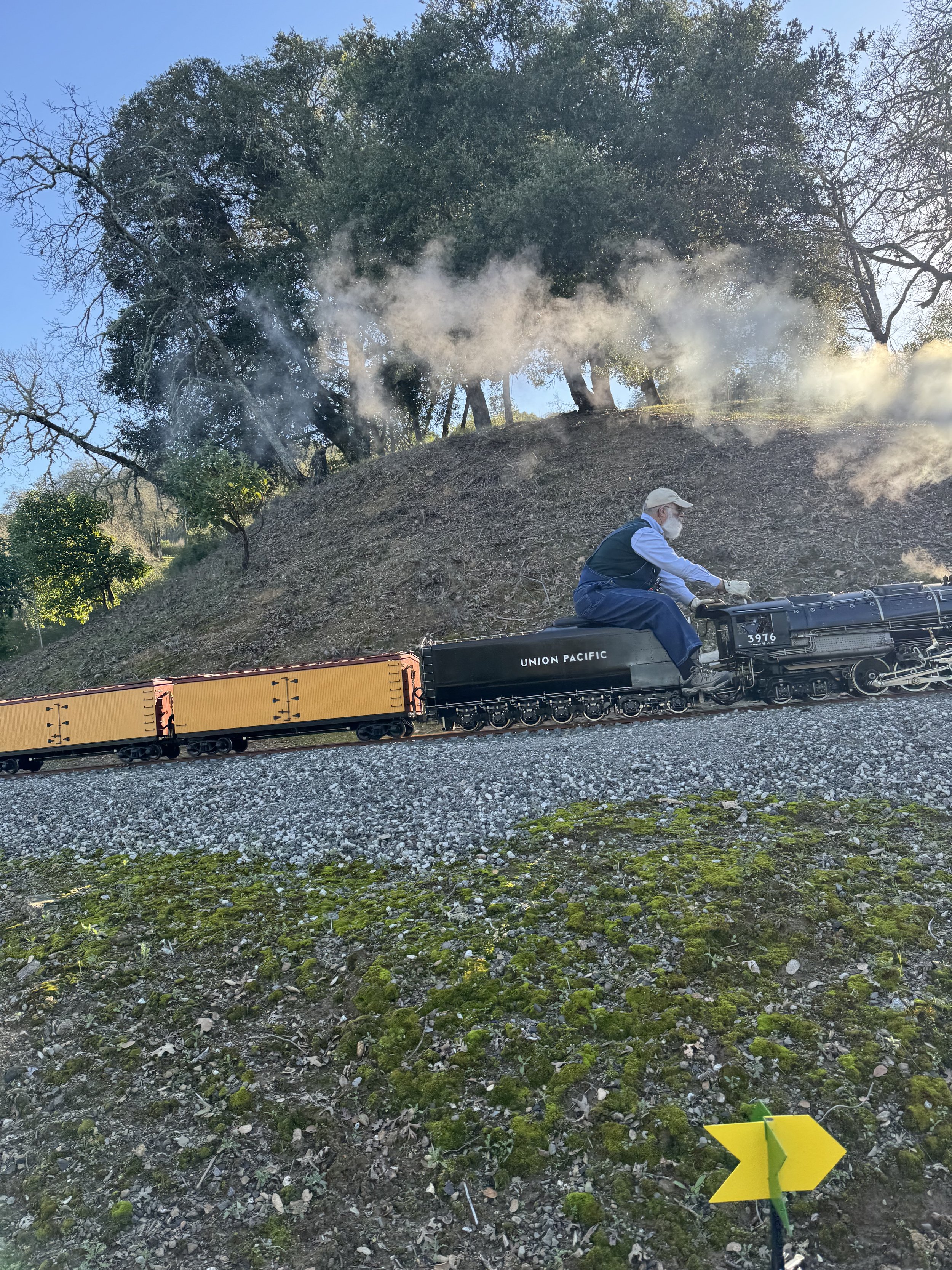 It was warm and sunny for our runday. We were fortunate to see the Luigi Morettiโs Challenger and Brandon McCrackenโs Pacific Steam engine out on the tracks.