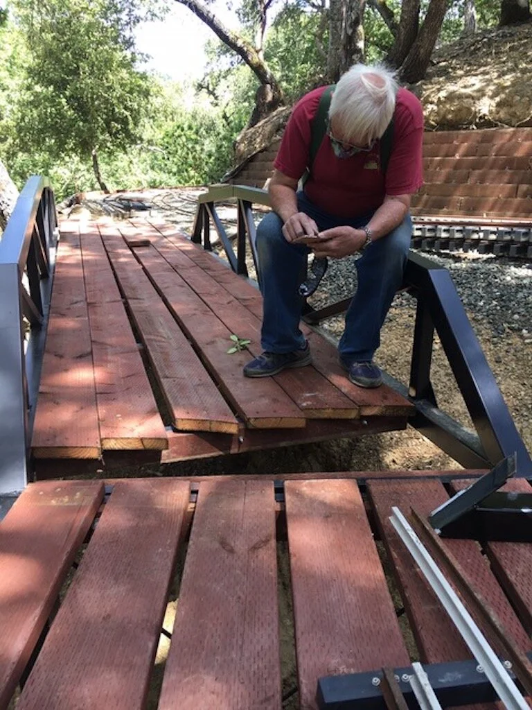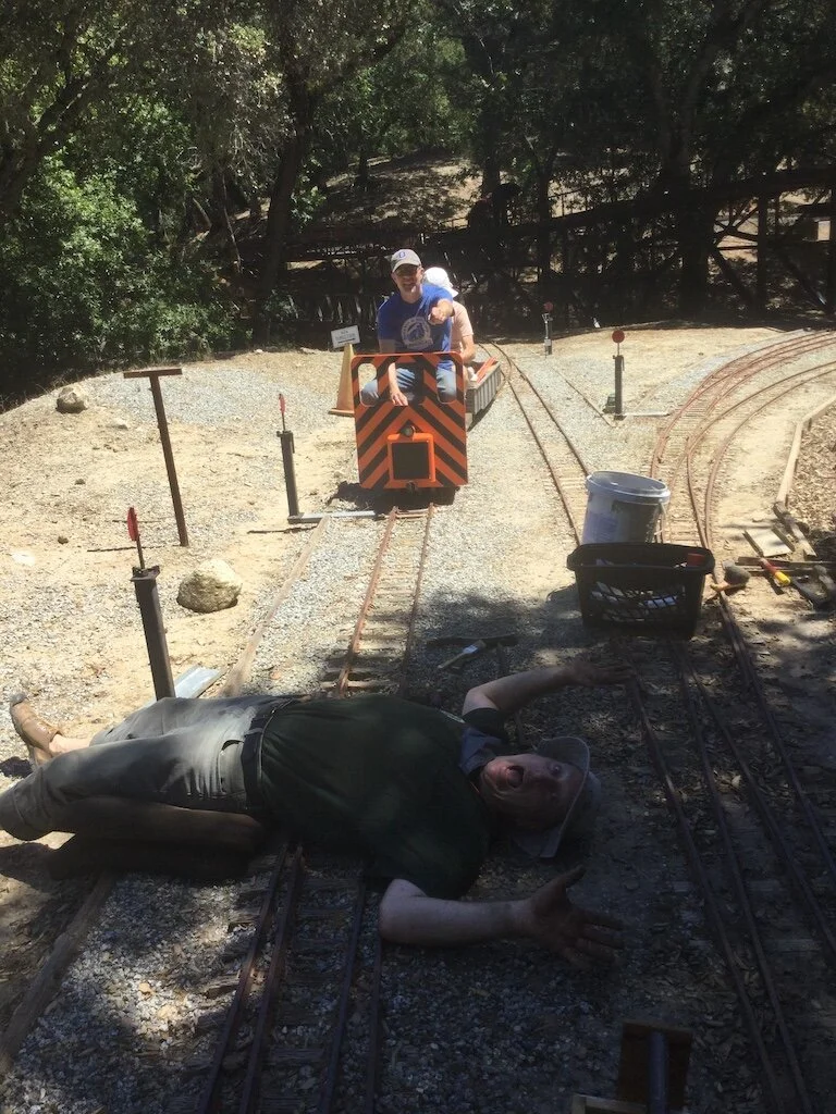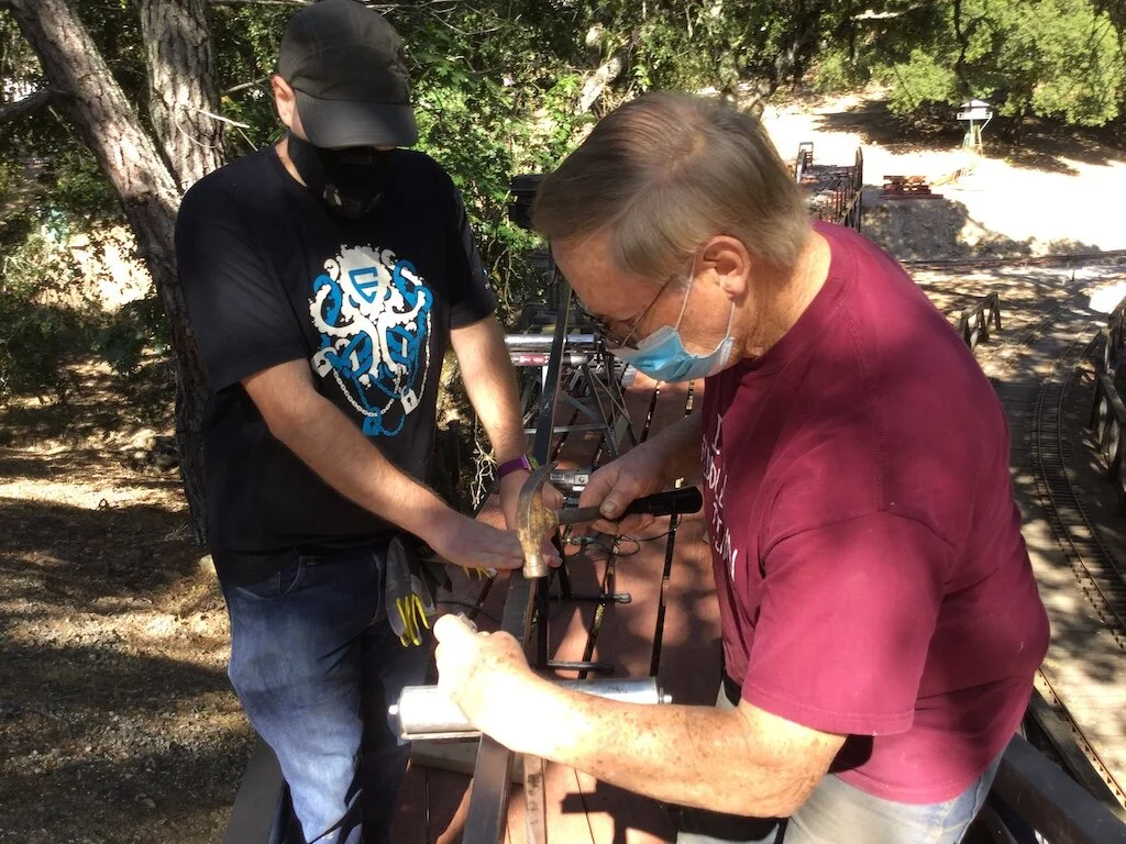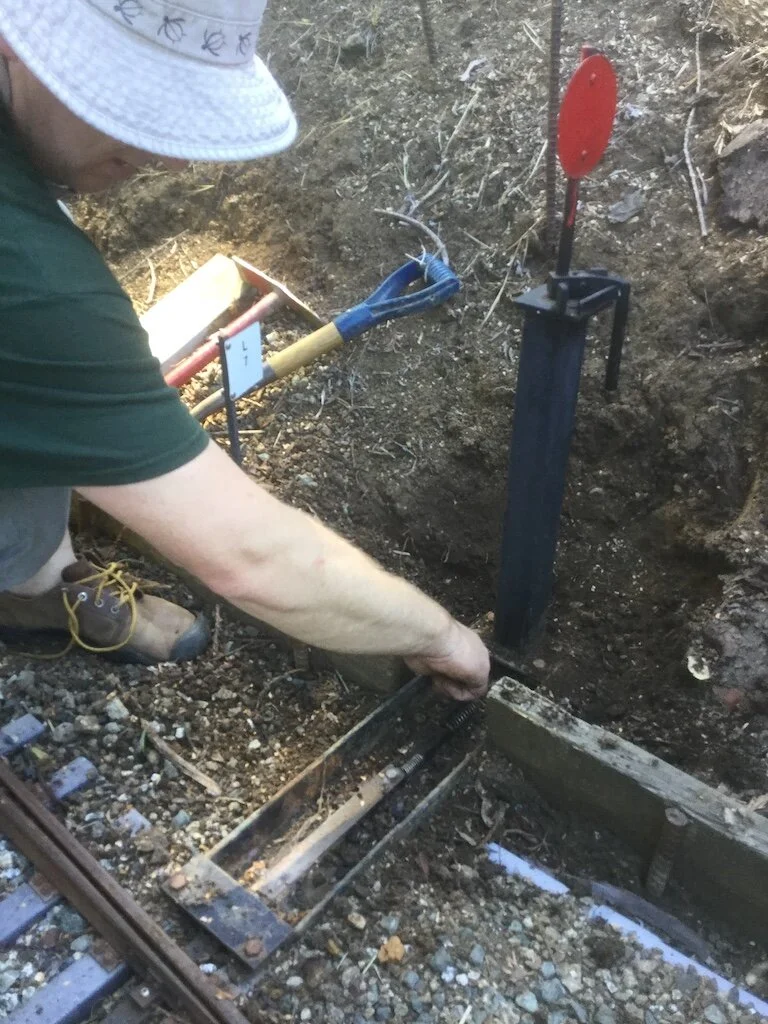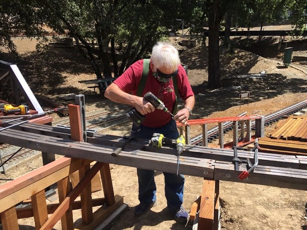 It took a large team to extend the grade beam for the Lumber Camp Bridgeβs trestle. Miles liked the electric hammer; he was disappointed that I did not follow-up on my proposal to bring dynamite to bear on the task.