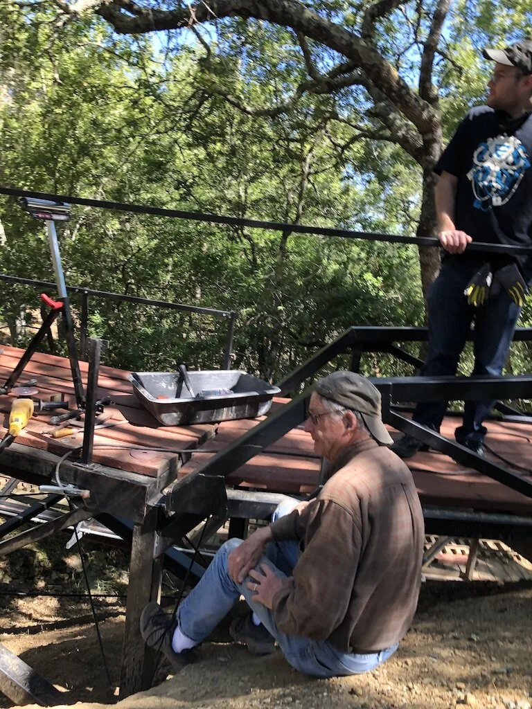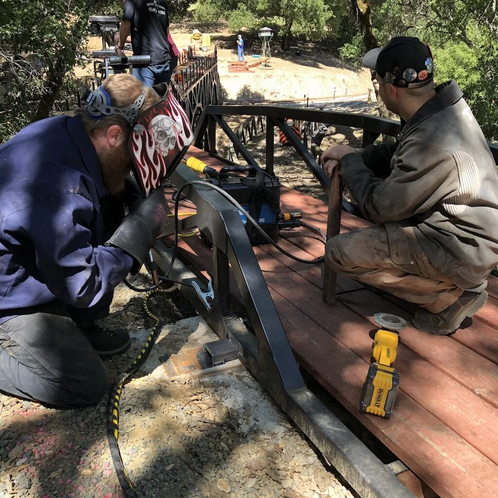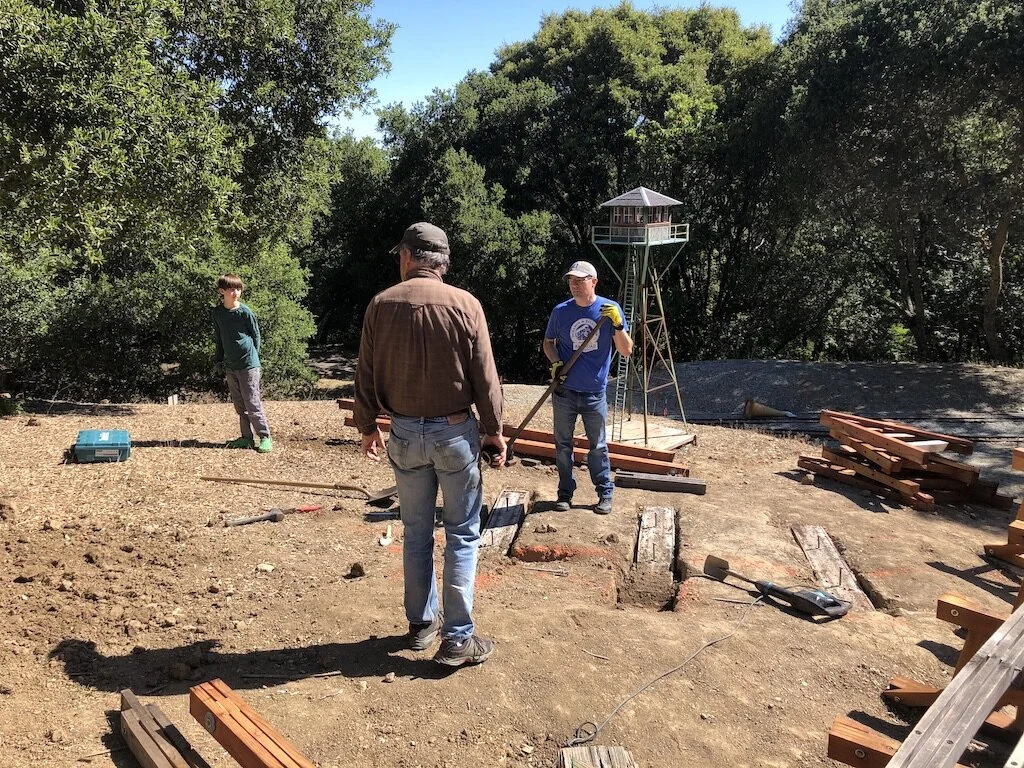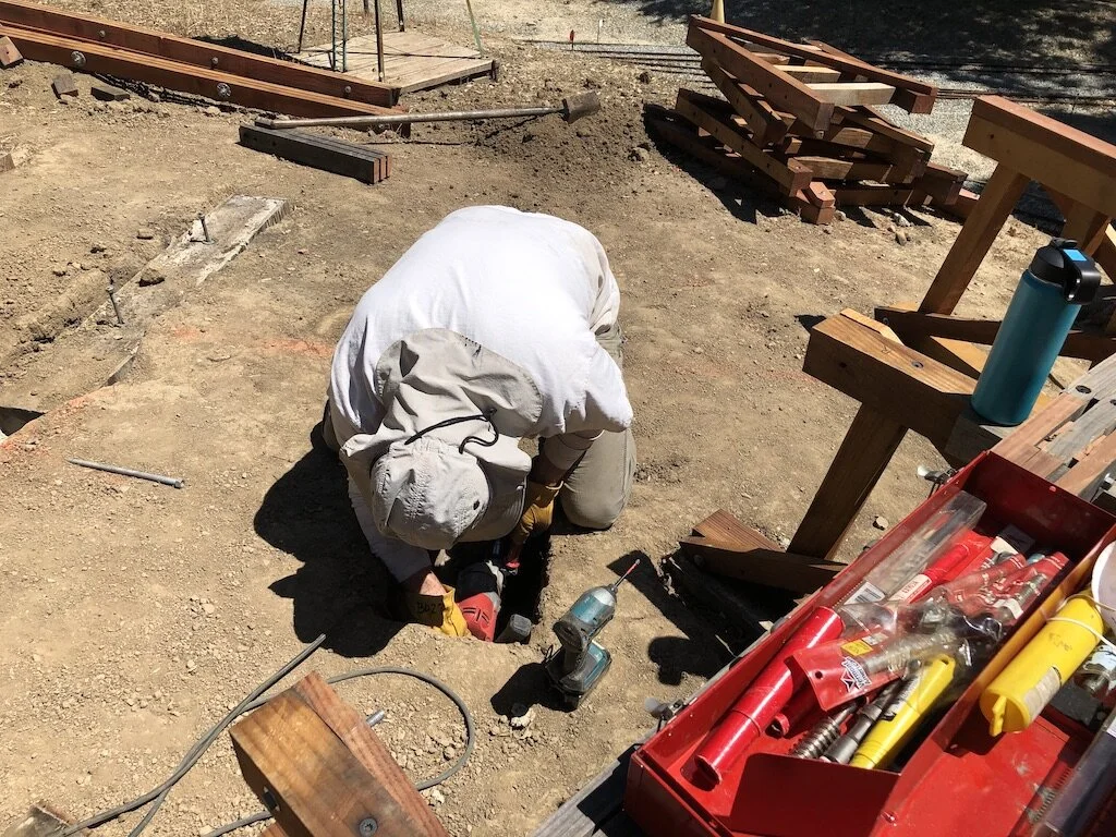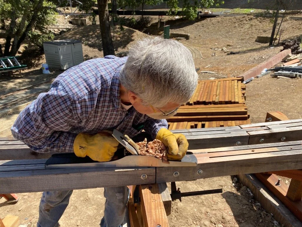 It took a large team to extend the grade beam for the Lumber Camp Bridgeβs trestle. Miles liked the electric hammer; he was disappointed that I did not follow-up on my proposal to bring dynamite to bear on the task.