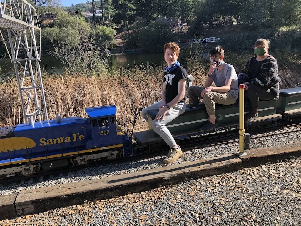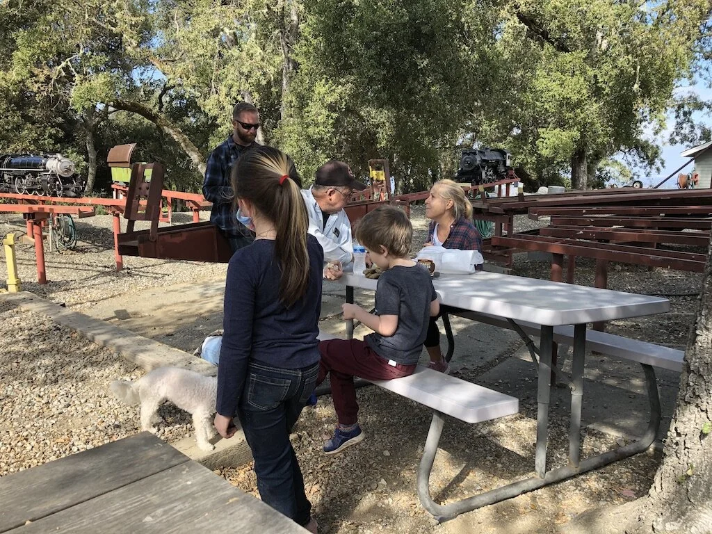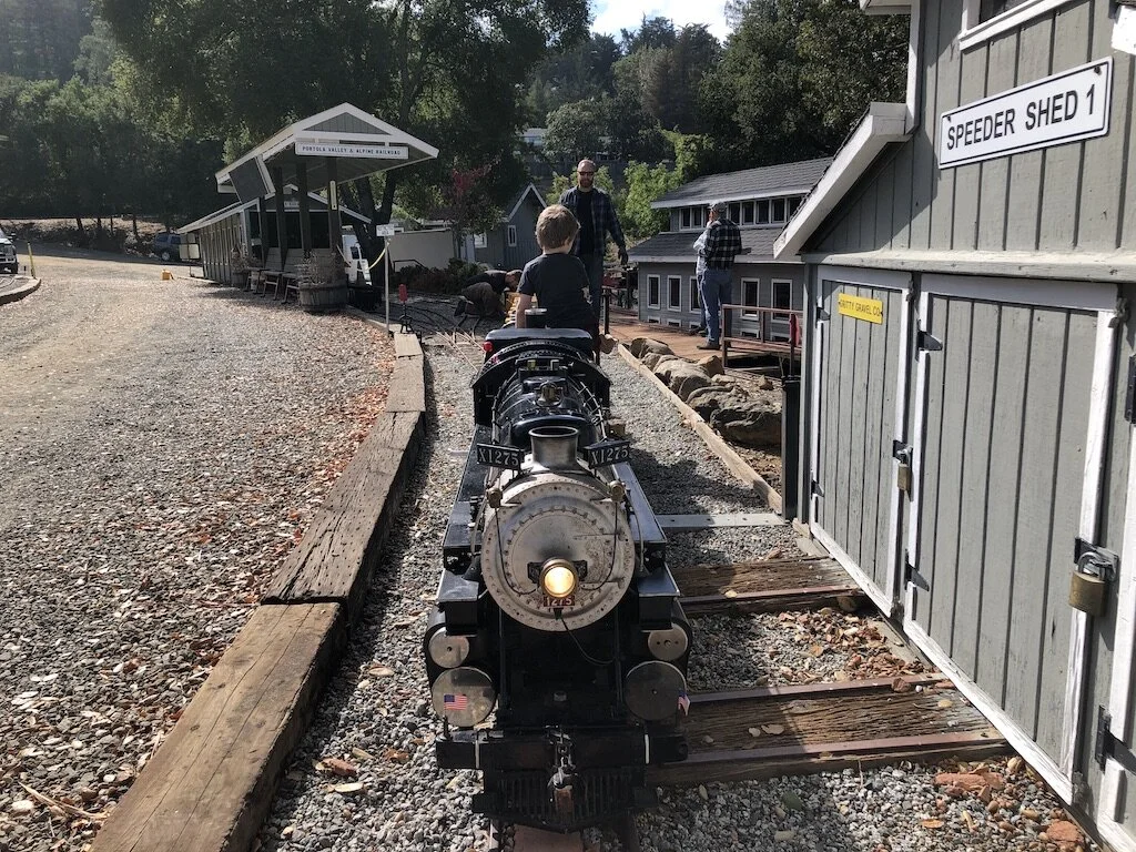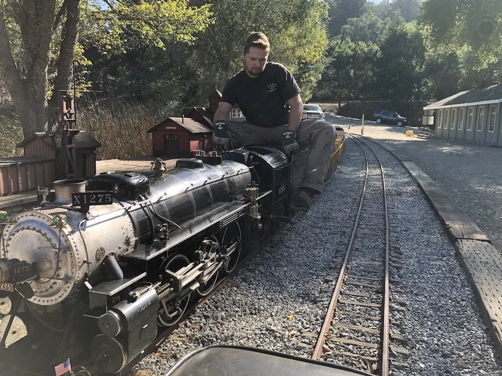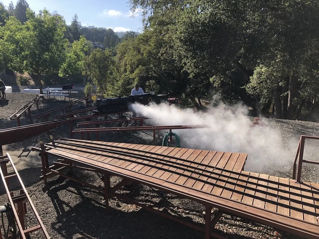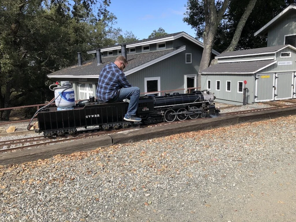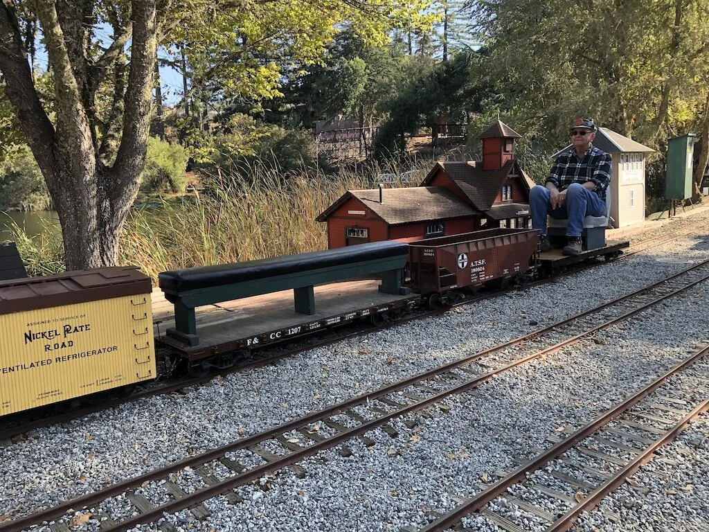 A small group showed up for a wonderful fall run day. The county declared a red-flag day (high fire danger). No solid fuel steamers were allowed to run. Those steamers that could switched to propane and had a fine day. A few speeders along with simple gas engines went out and admired the Lumber Camp Bridge complex.