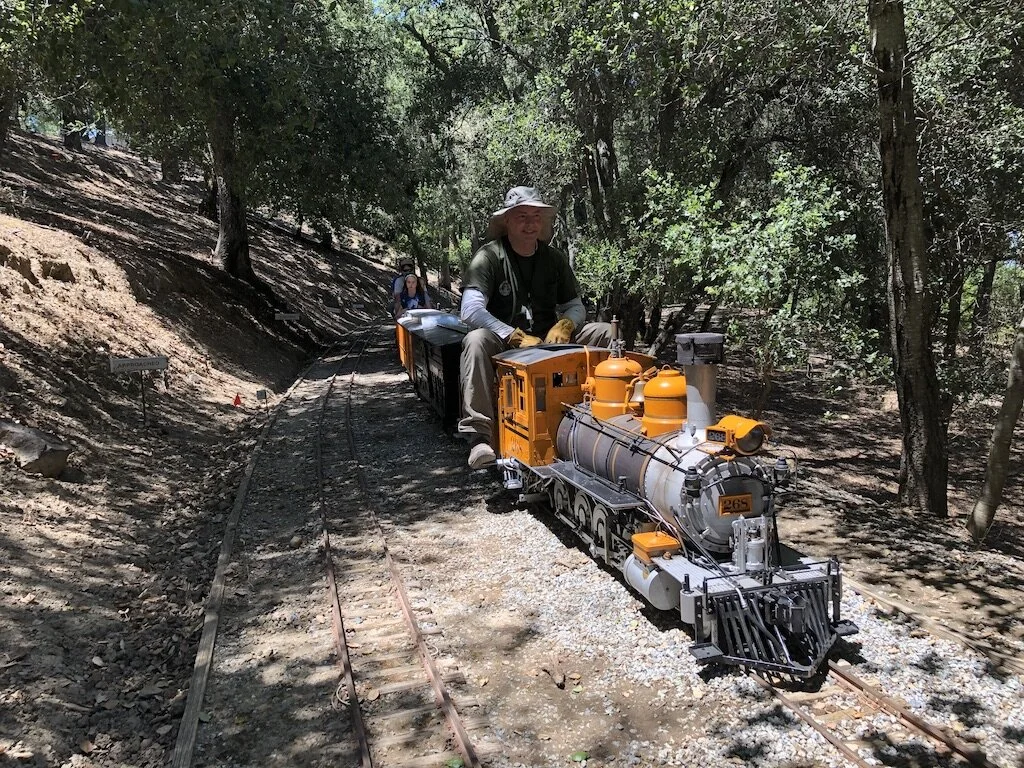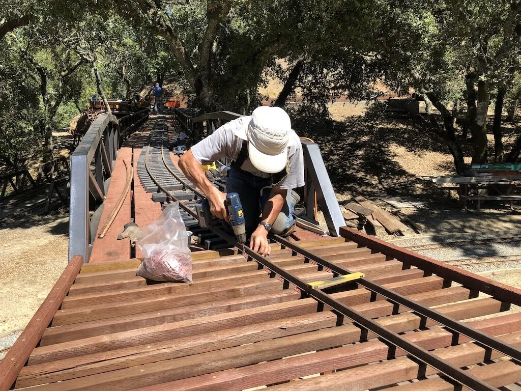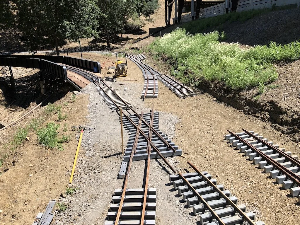 The first steam train took tentative steps across the Lumber Camp Bridge. Quite the inspiration to complete the rest of the Loop.
