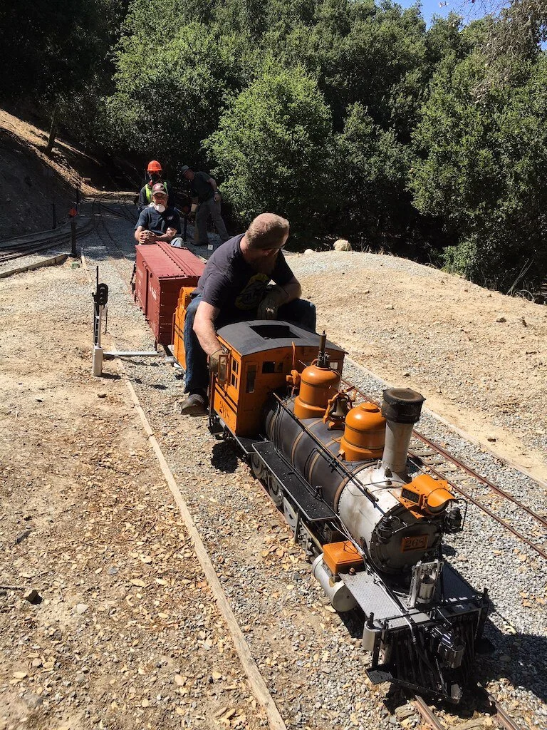 A small group of people worked on their trains and put in some hard labor. With work tasks winding down on the Lumber Camp Loop some people are turning their attention to the Caboose Route