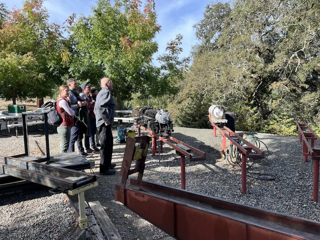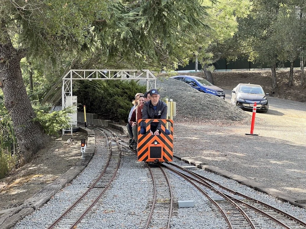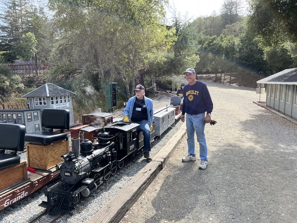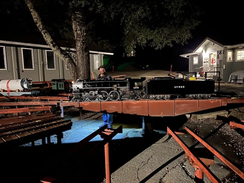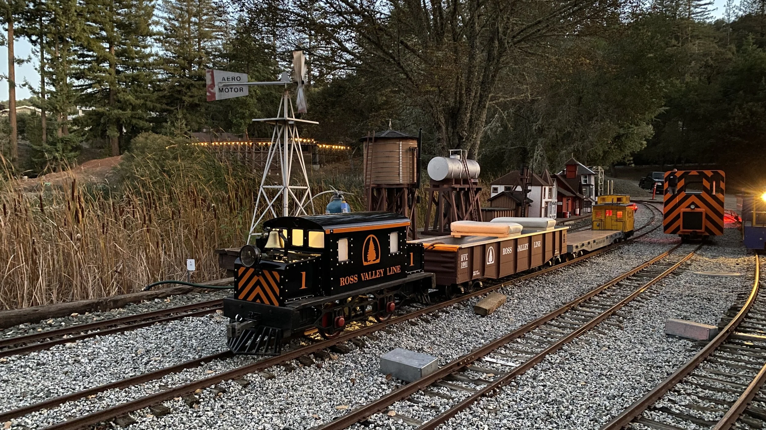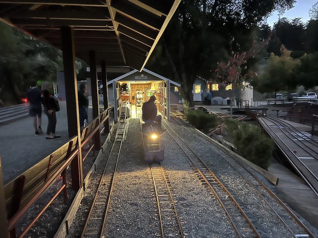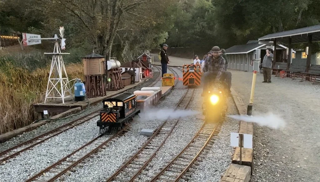 The night run was a big hit. We had a fine crowd in the morning followed by a lunch time lull. Around dinner time, pizza and train lovers showed up in force for a great gathering. There were steamer rides for all with great views of the sun setting over San Francisco bay.