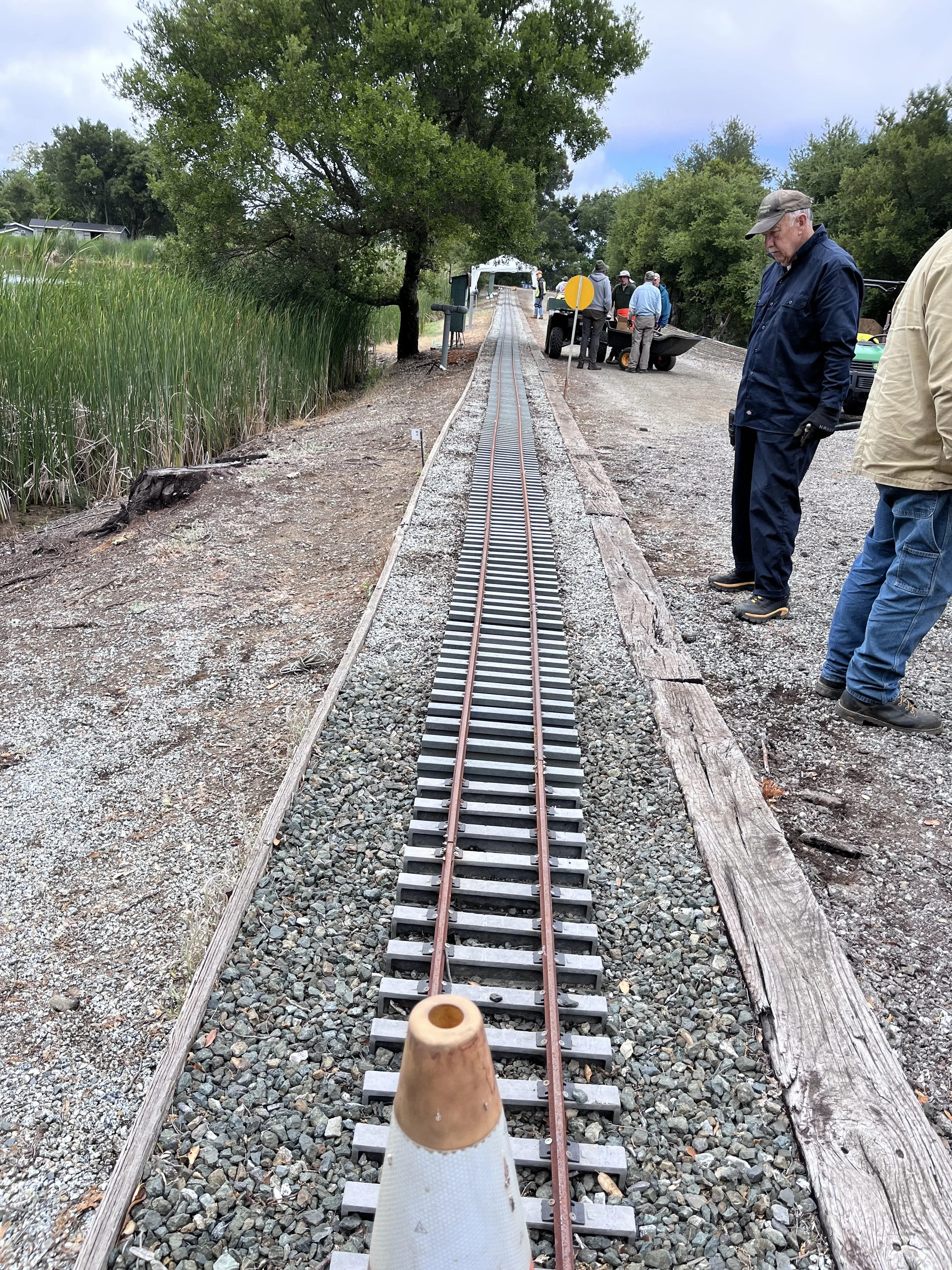 Weeks of prep work paid off. We had the people, tools, and a well tested work flow. The ties were replaced before all our knees and backs gave out:)