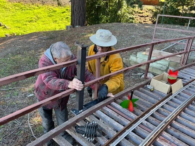 Bill and Bruno installing a remote switch stand on the trestle