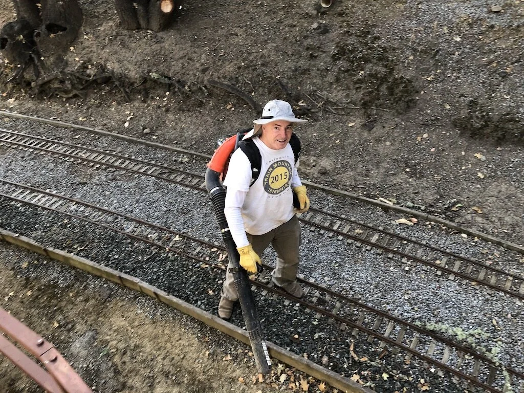 Bruce blew the right-of-way in prep for the October run whilst Bill, Russ, Carl, and Dee worked in the final arch of the LCL bridge.