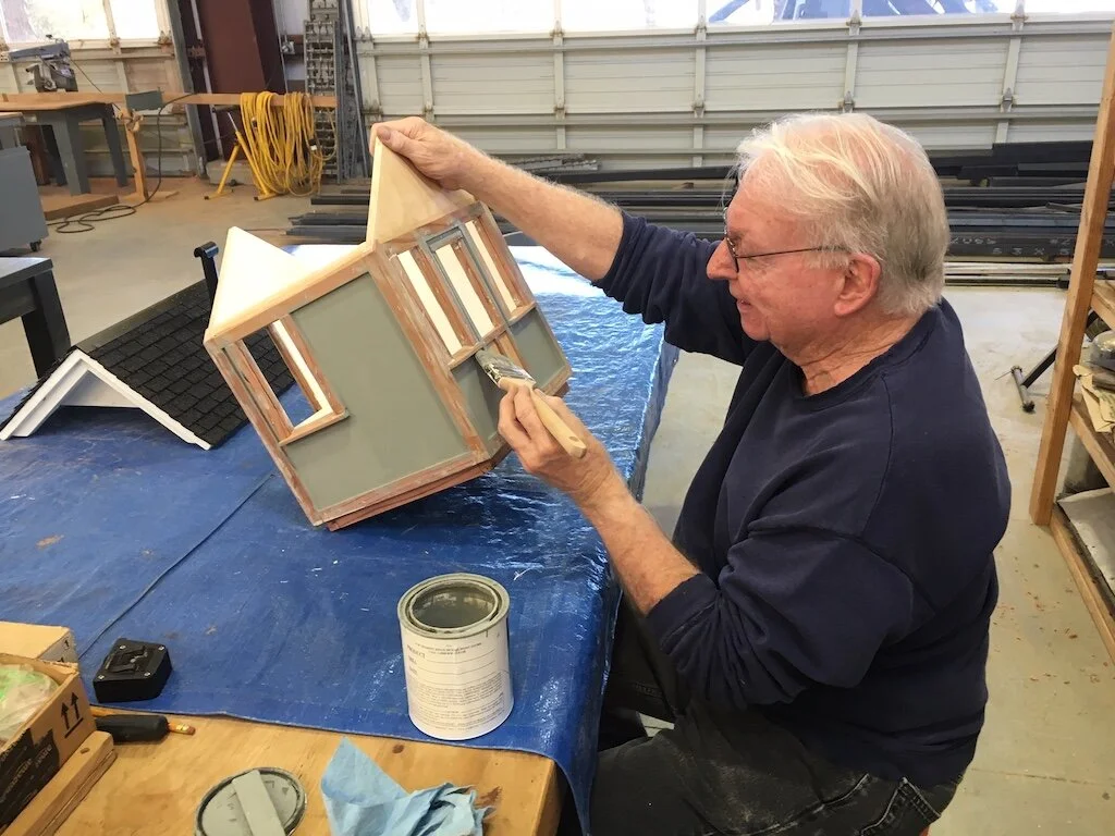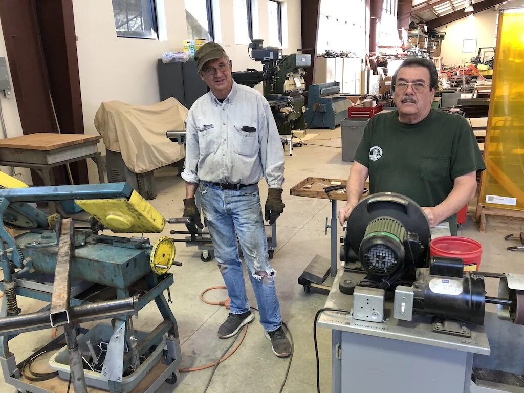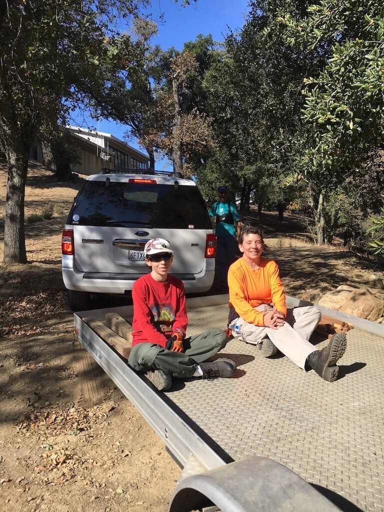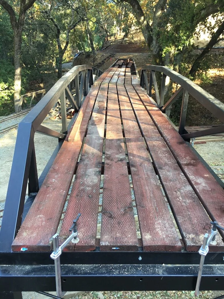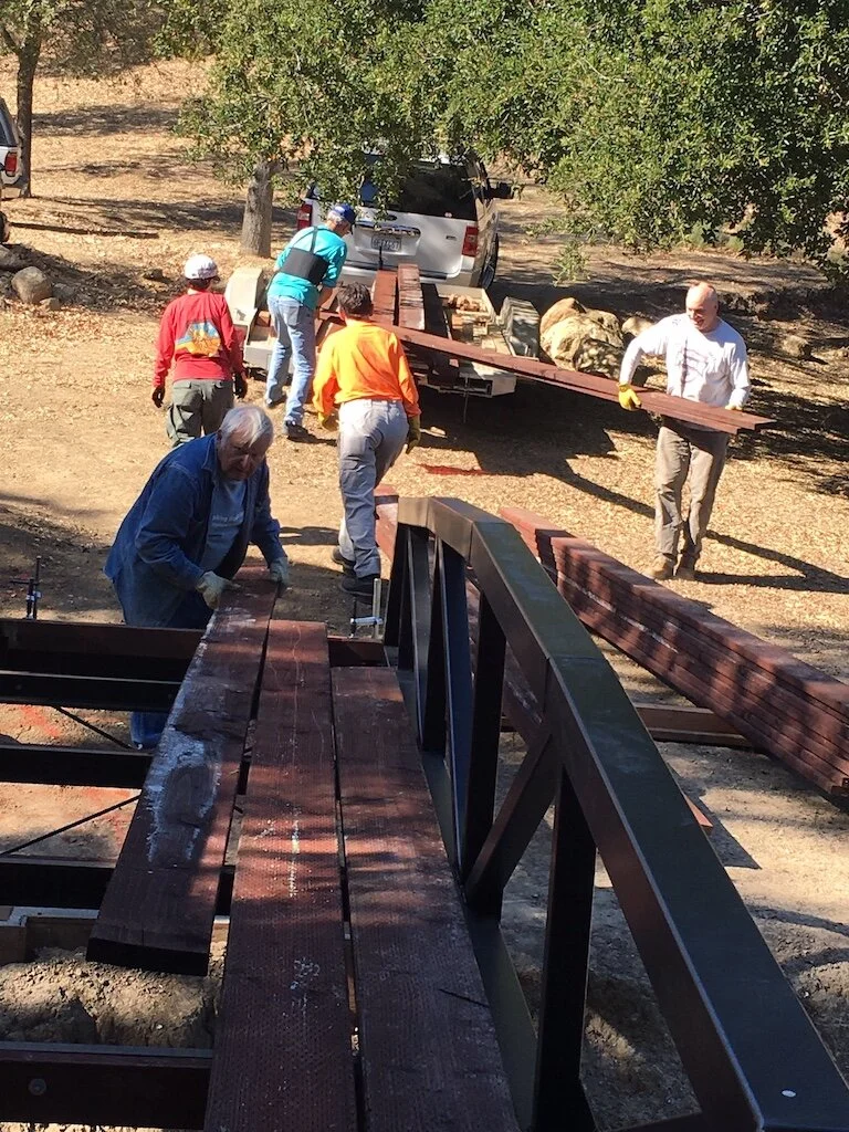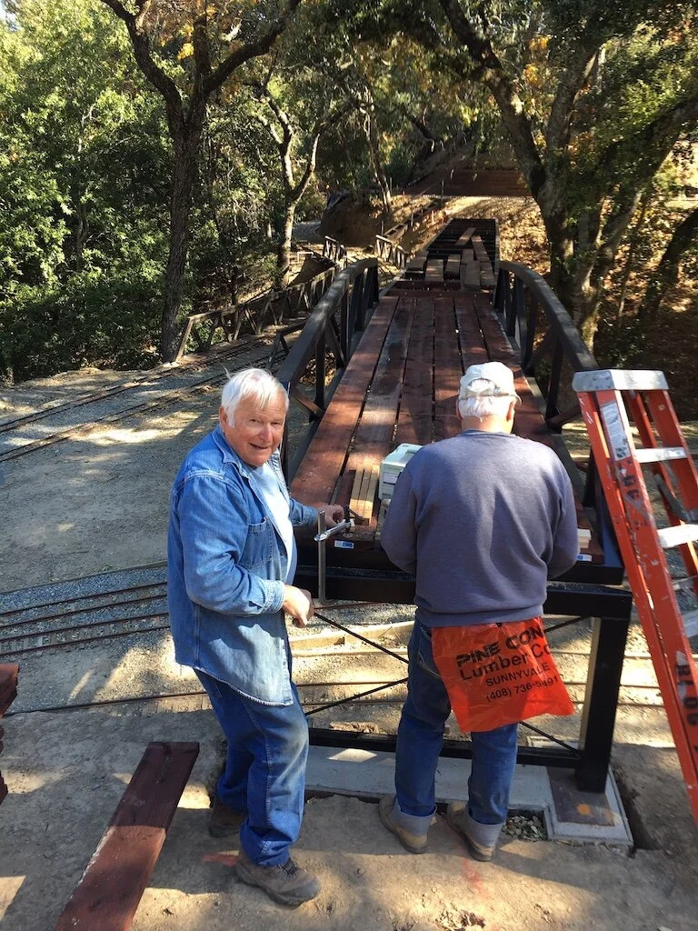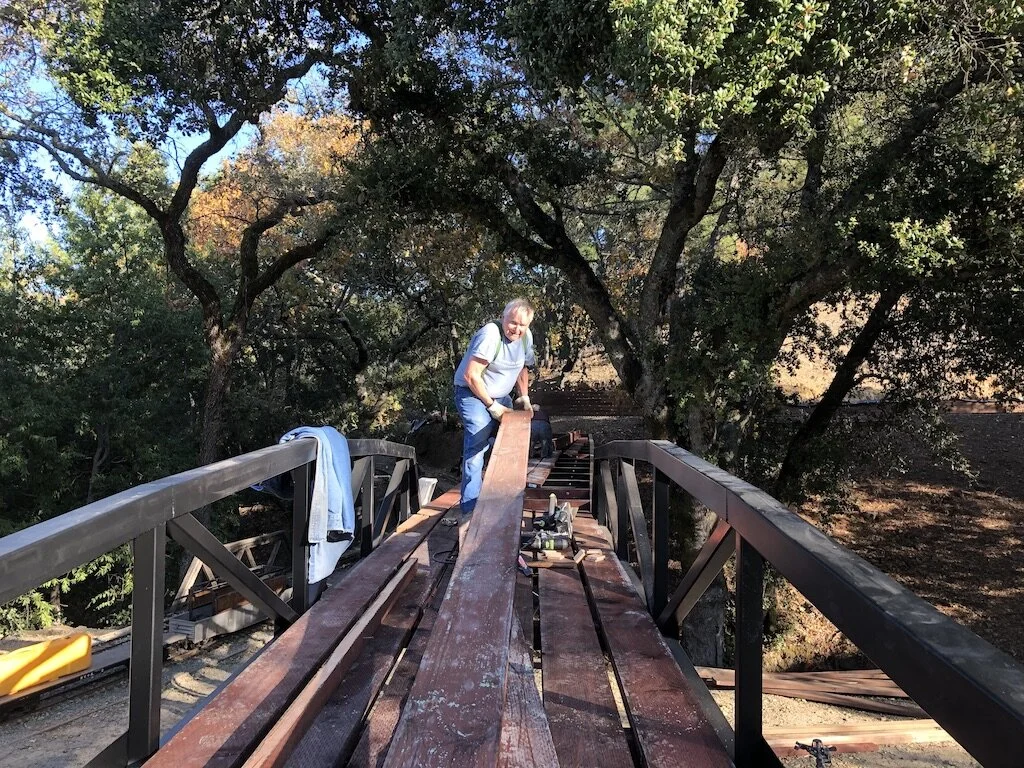 Mike and Randy secure decking to the Lumber Camp Bridge