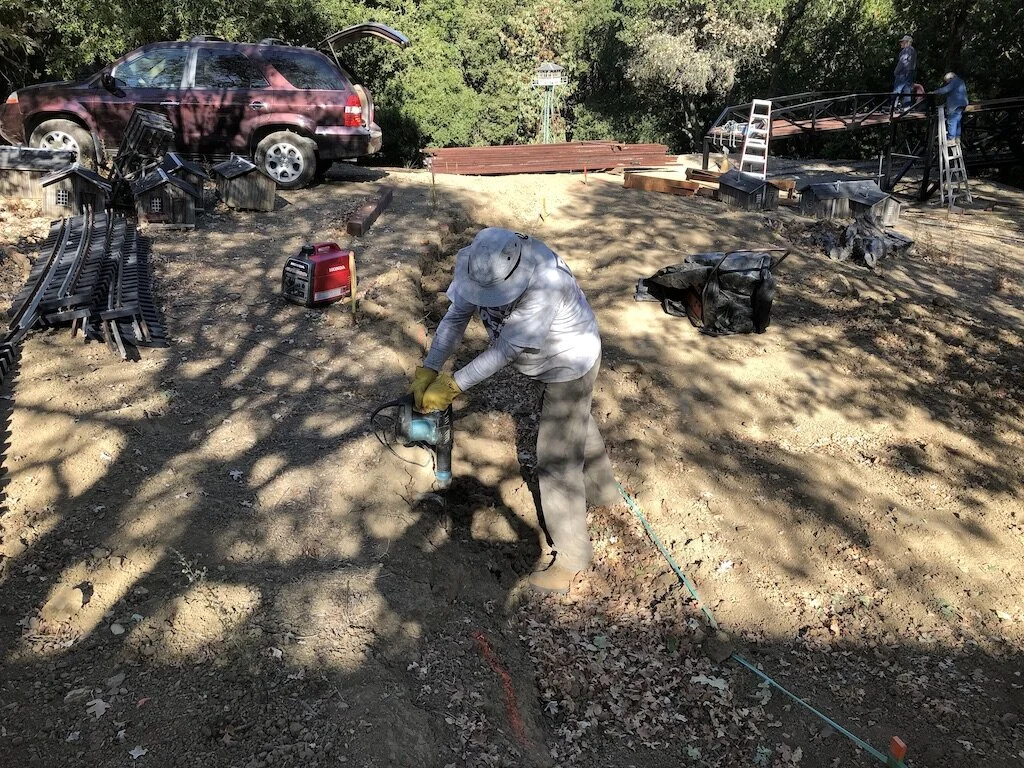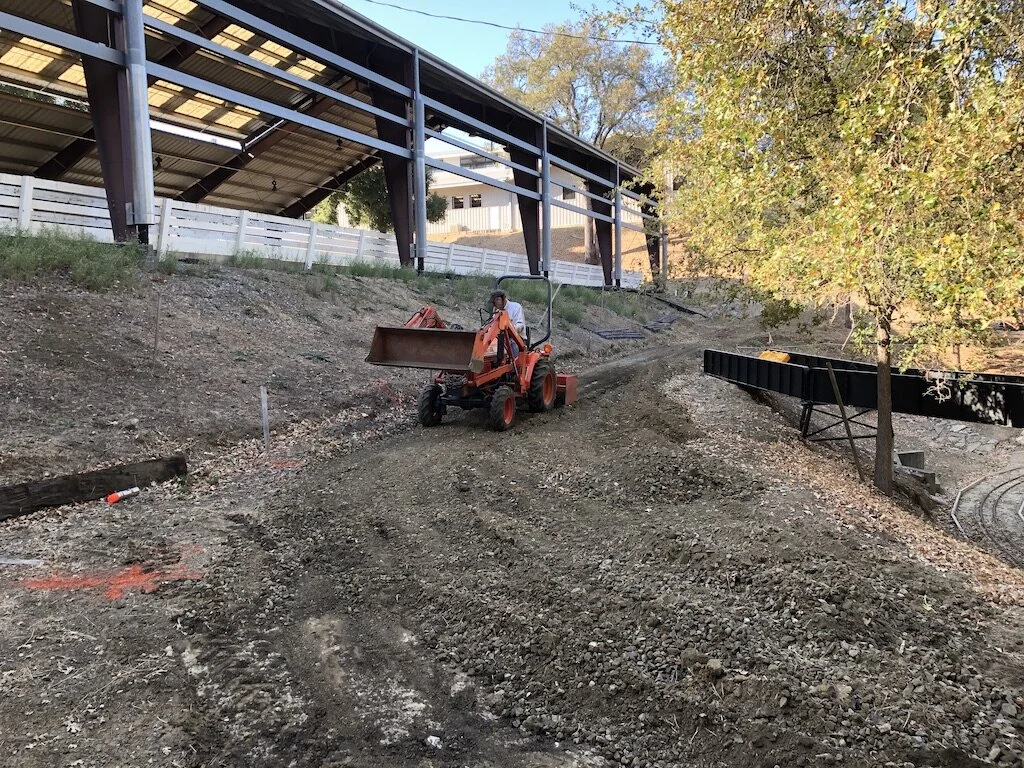 Kevin, Dee, Sierra, and Bob continued to add track panels and have now reached just below the riding arena.