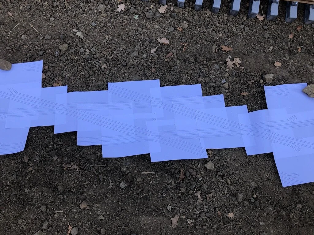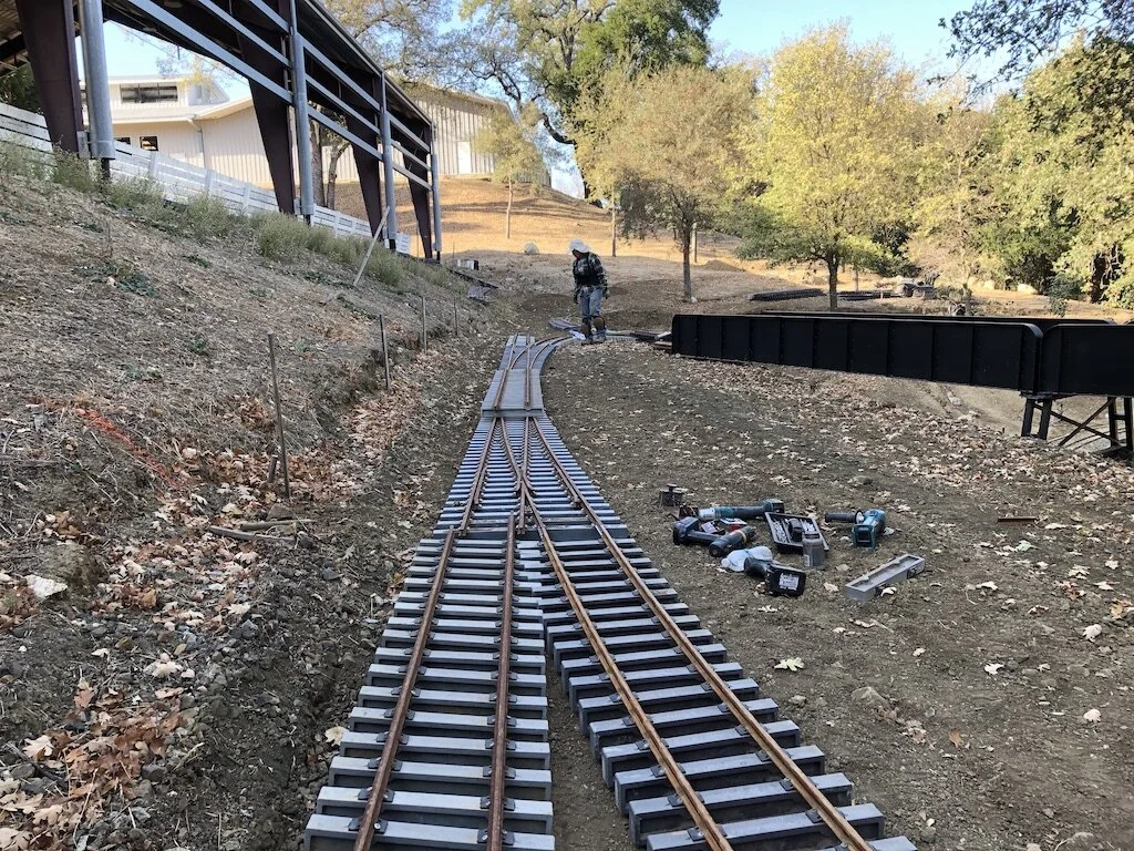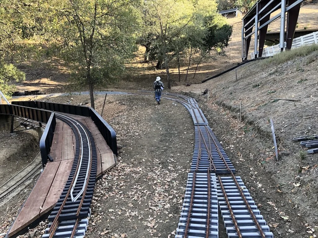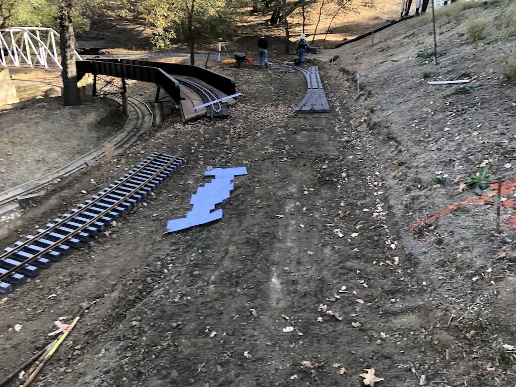 Kevin has laid out most of the track for the Lumber Camp Loop. It is getting easier to see the full picture.