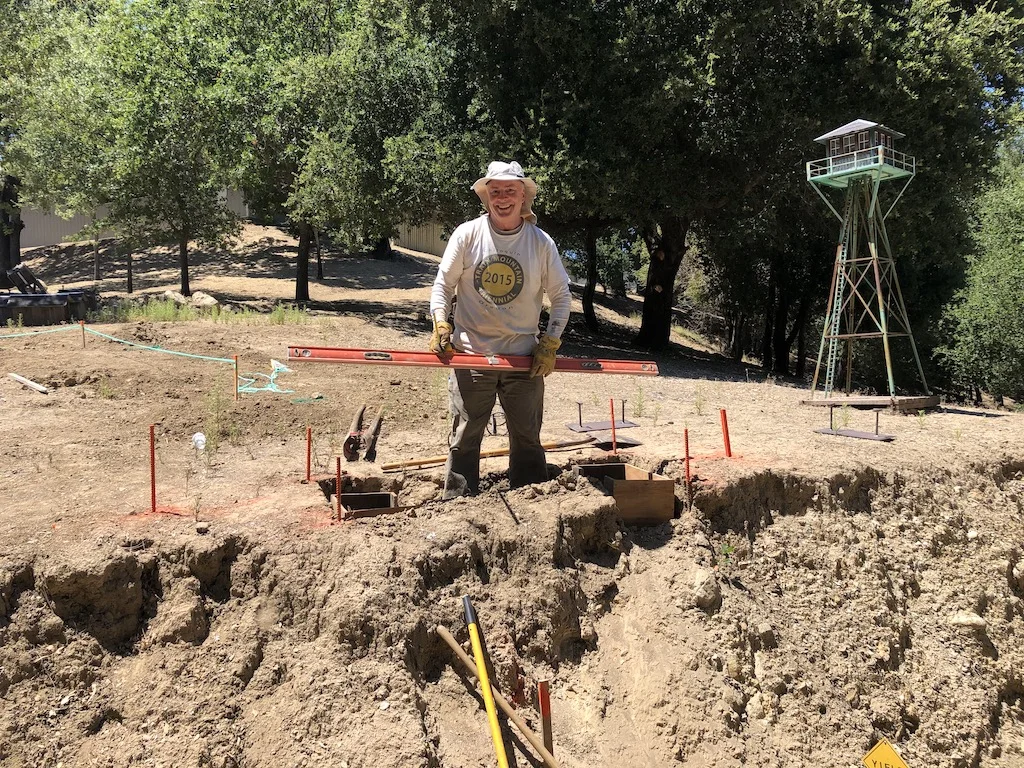 The July run weekend morphed into two workdays with guest trains passing through every so often. With Help from Ed Holland, Kevin continued with his survey work while Bruce dug and formed the grade beam for the Lumber Camp Bridge’s steel truss section. No cement was poured as it was over 90 degrees by the time the forms were complete.