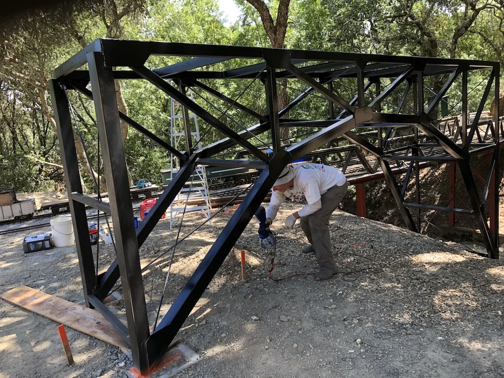 On Sunday Bruce painted the Truss section of the Lumber Camp Bridge before it got too hot.