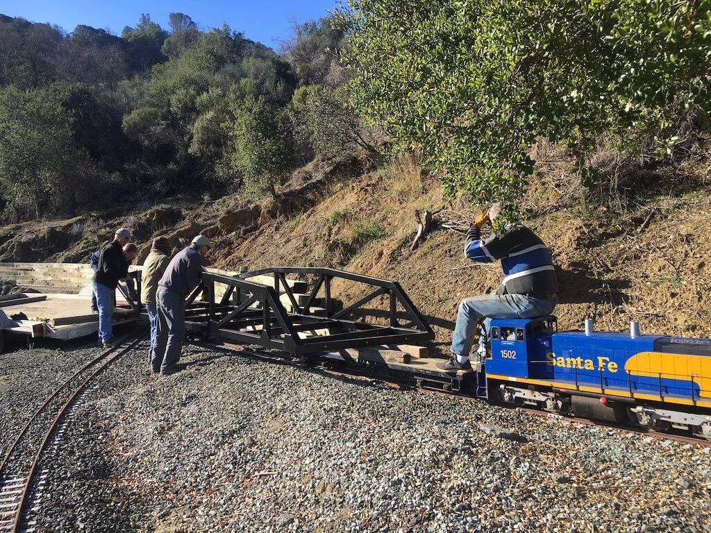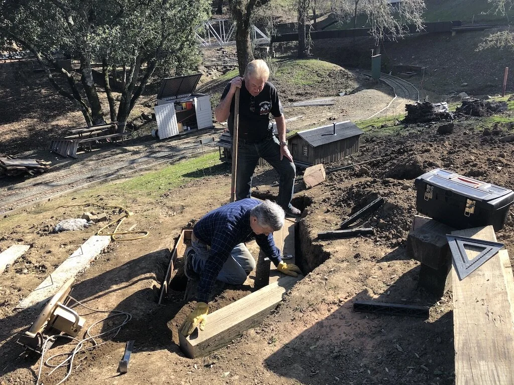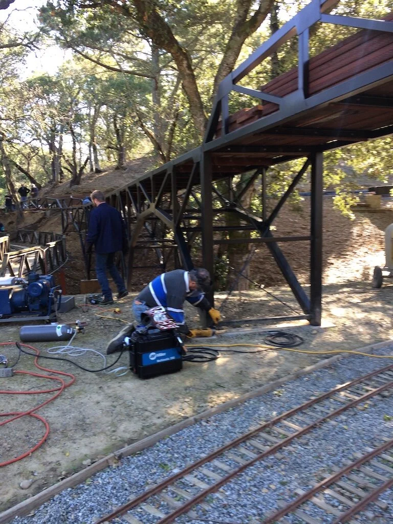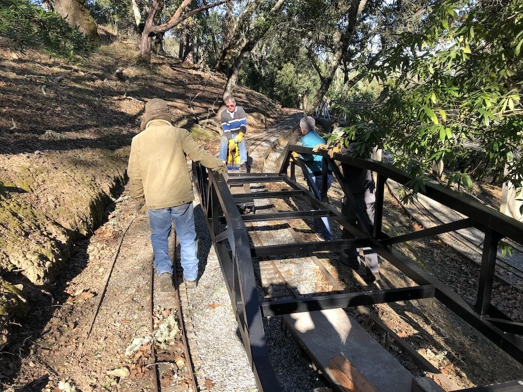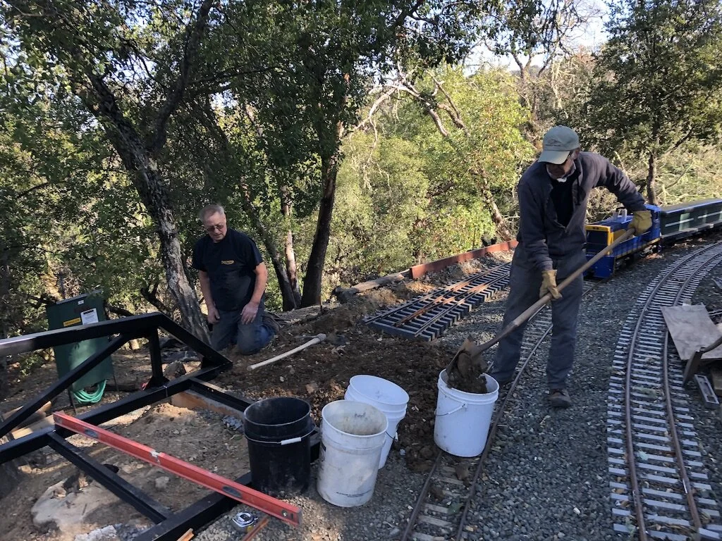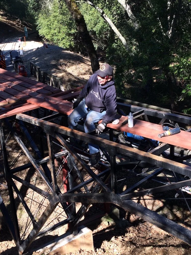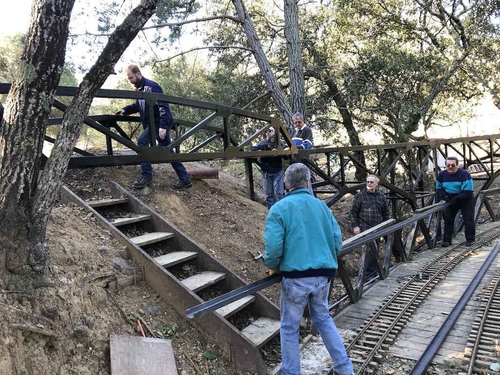 On the east side of the Lumber Camp Bridge the final steel section was installed. On the west side, Ken and Kevin worked on the trestle foundation.