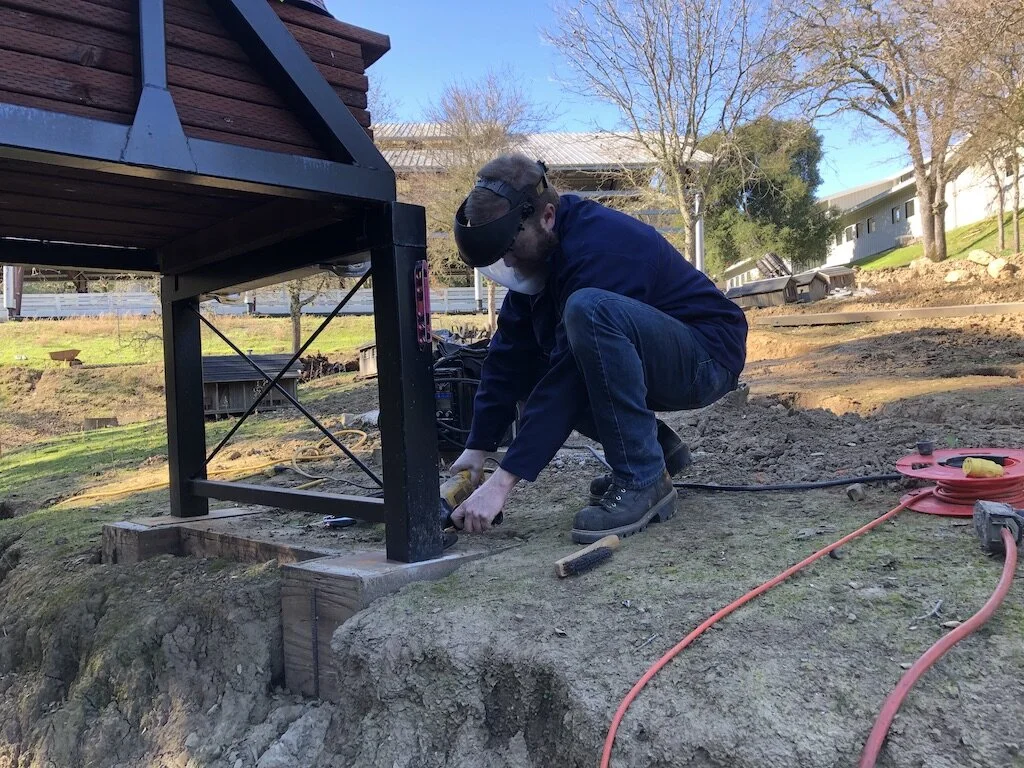 A huge work crew showed up with gloves, knee pads, welding gear, and cameras in hand.