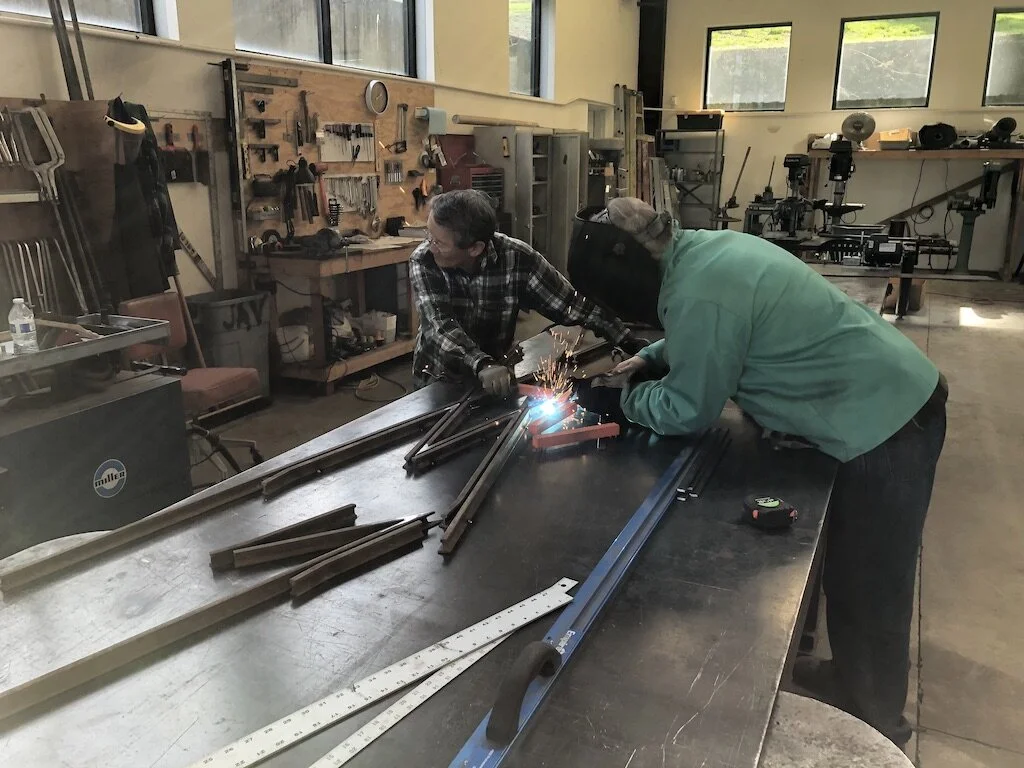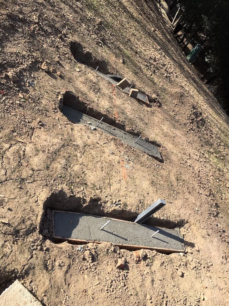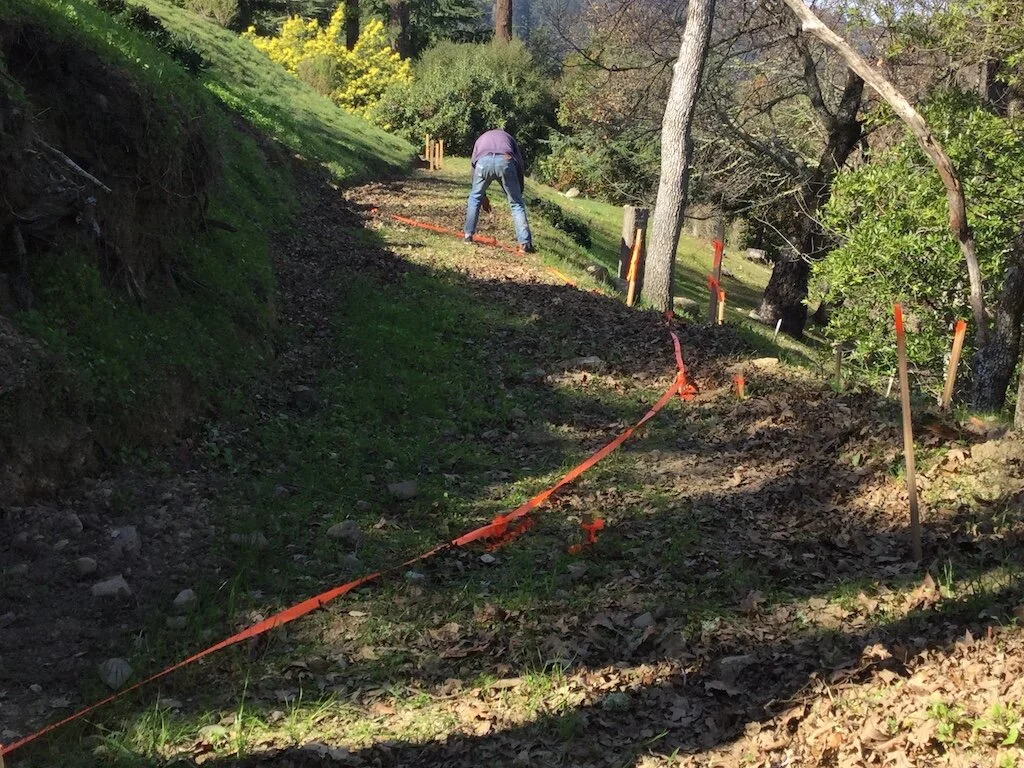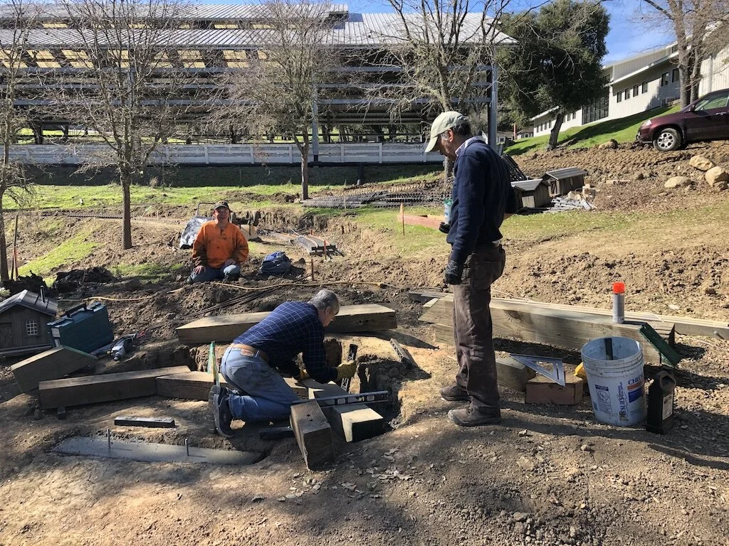 With all steel sections of the Lumber Camp Bridge in place, most everyone focused on the trestle section today. Bruce and Mike lead the cement work whilst Ken built a small berm retaining wall