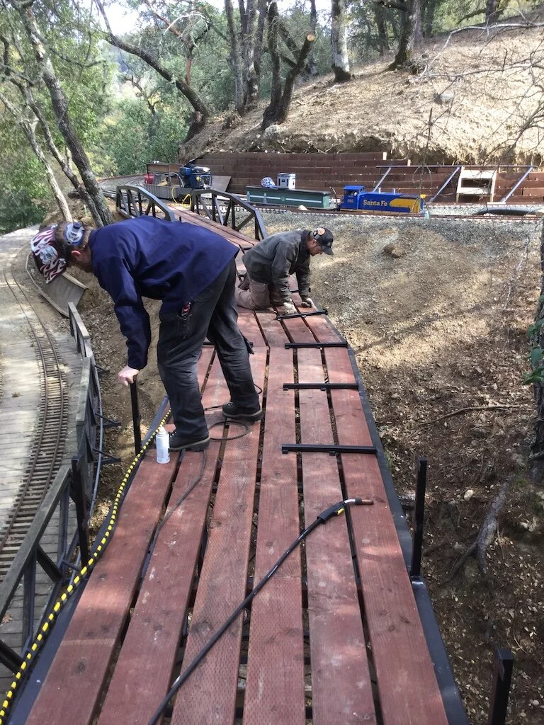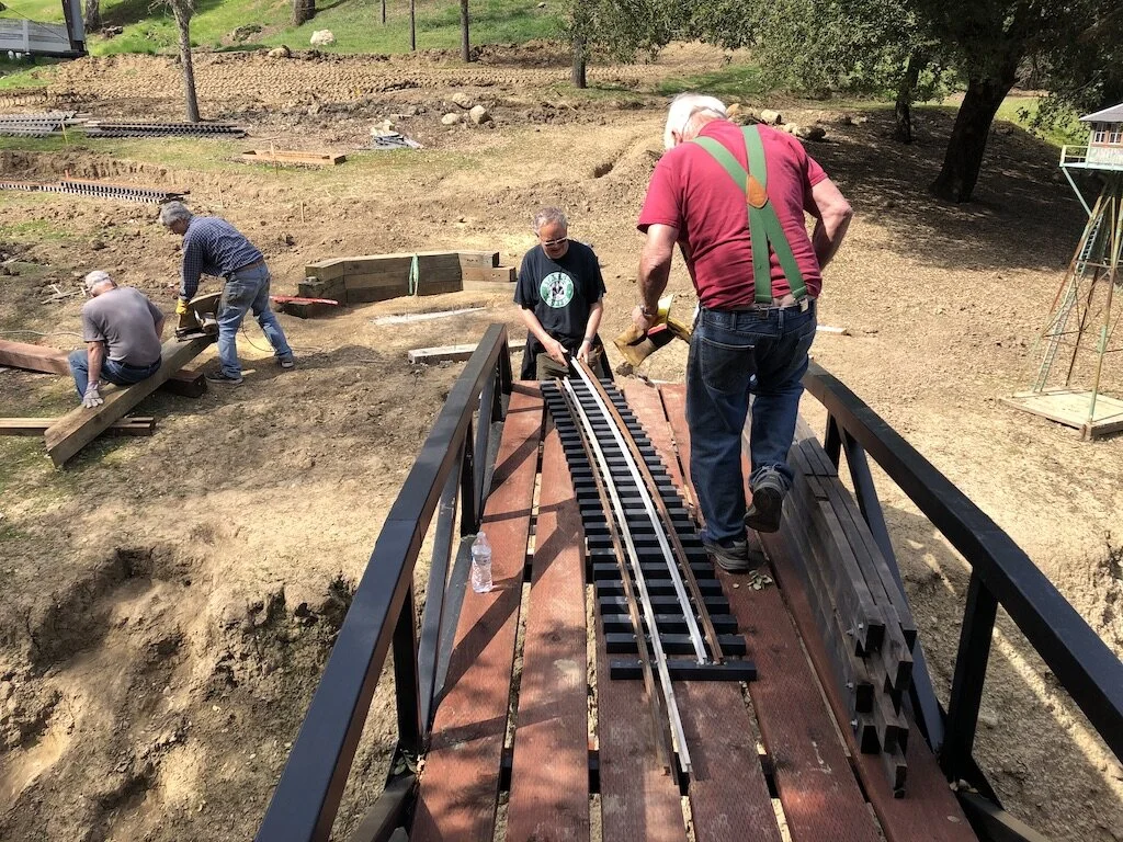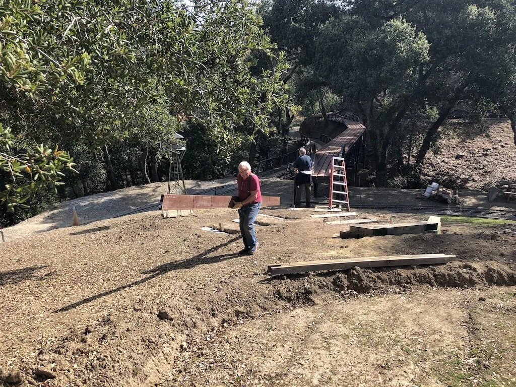 The west side (trestle) height was established so the team can start to prefabricate bents. They also fabricated ties of the same style used on the Caboose Trestle.