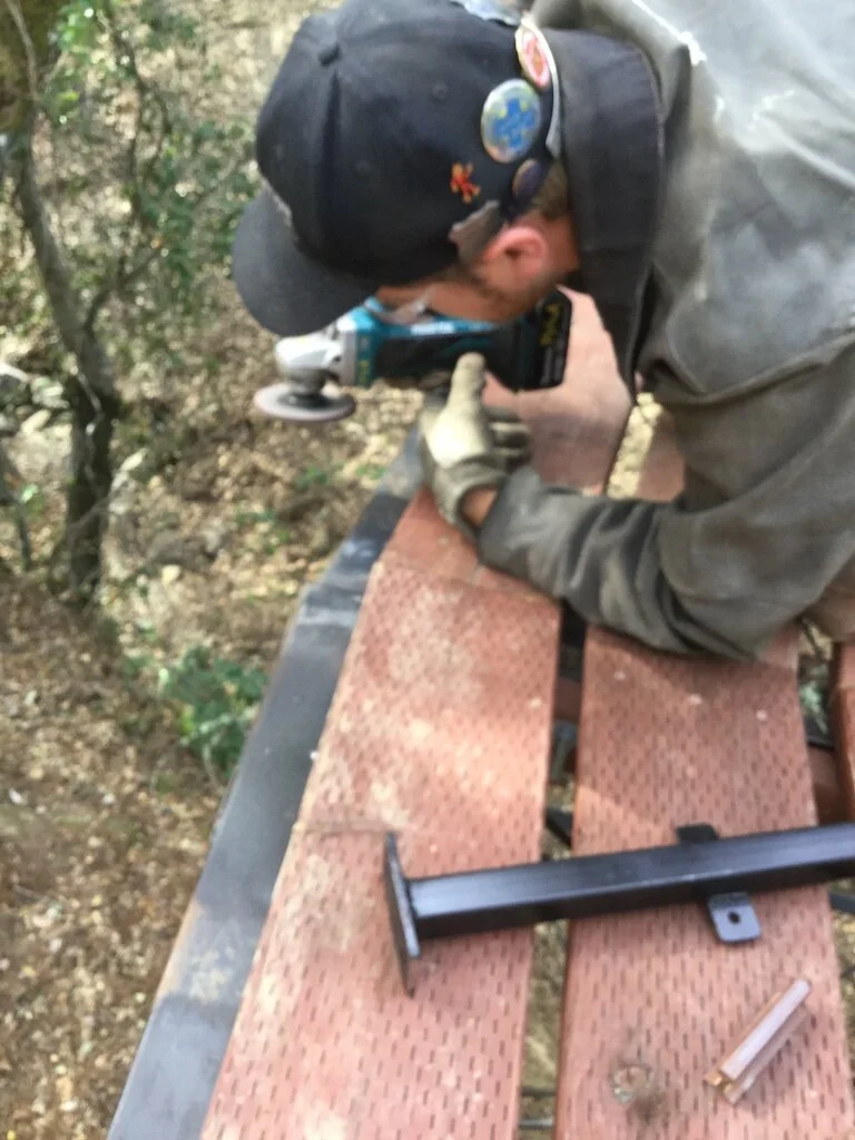 Mitchell & Brandon weld handrail supports to the bridge deck (see video below)