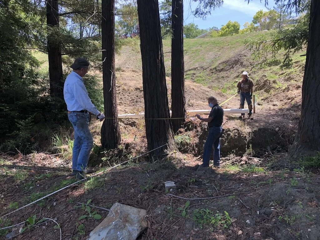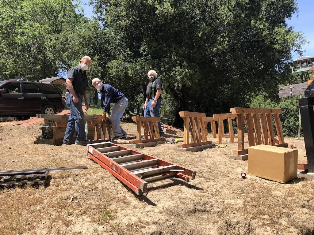 Kevin, Ken, & Mike erect trestle bents for the LUmber Camp Bridge