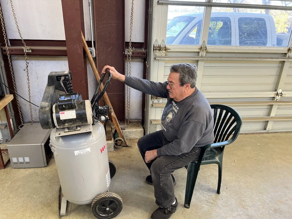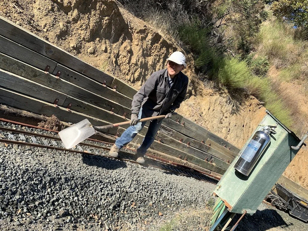 Mike brought up his trusty tractor to refill the ballast hopper for Kevin