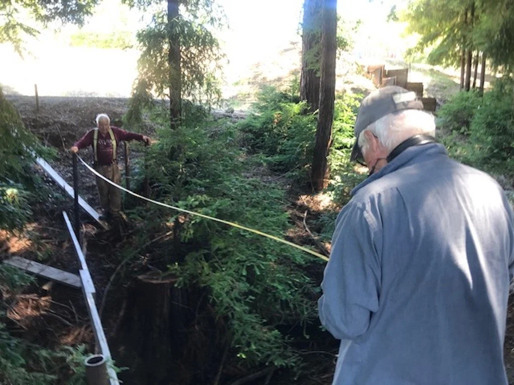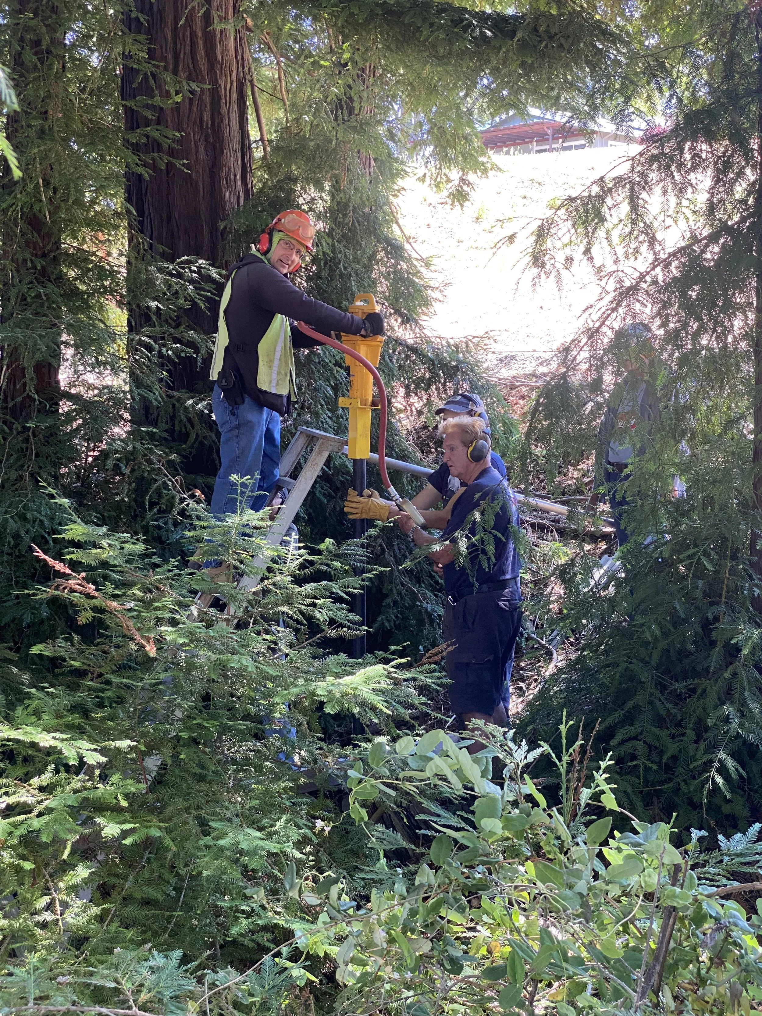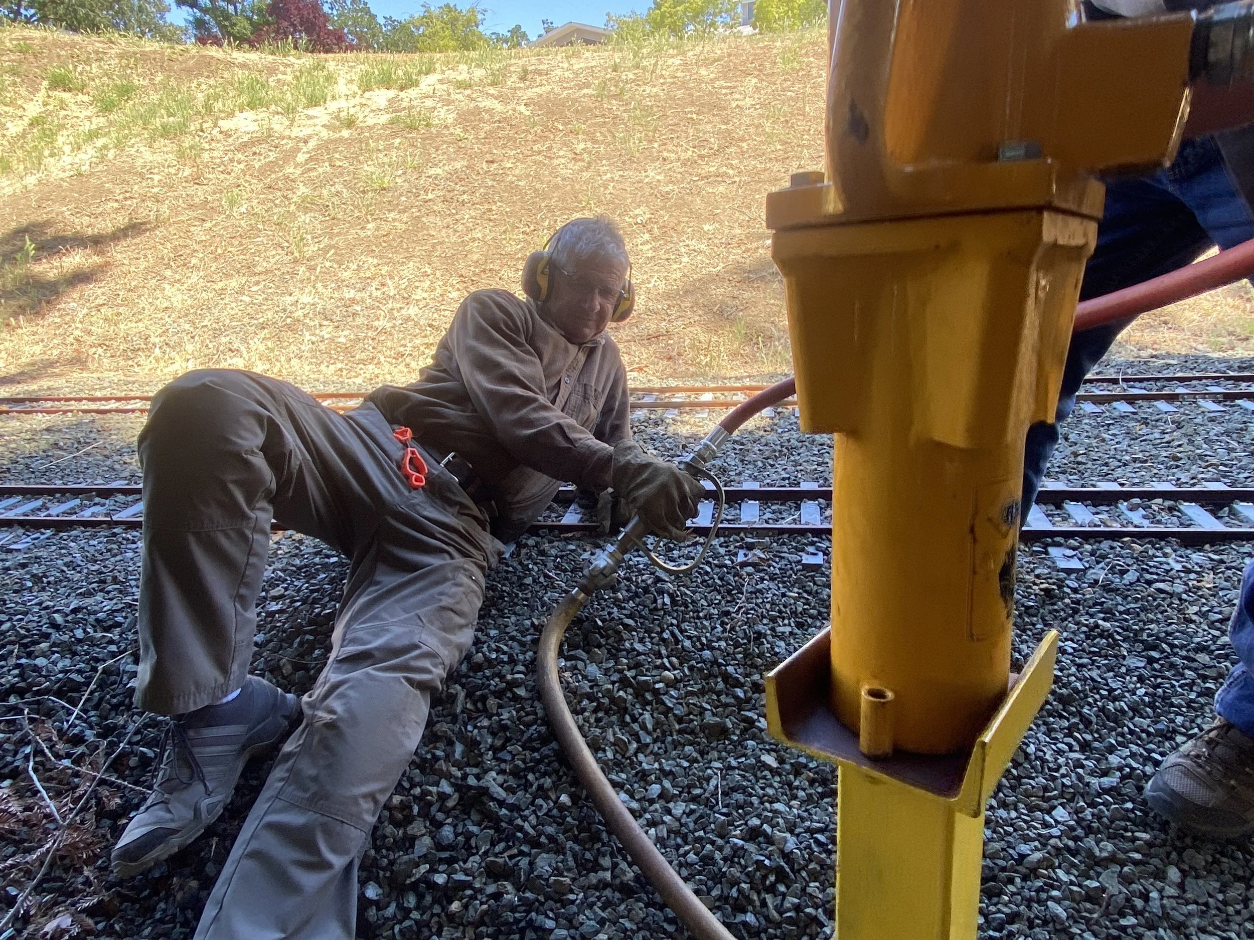 Mike had the biggest crew of the day installing the Caboose Camp to Redwood Tunnel foot bridge foundation. It was a very successful day! Got all 8 posts in the ground an average of 4 feet deep - until resistance was met. Many Thanks to Matt, Dee, Dean, Randy, Kevin W, and Bill.