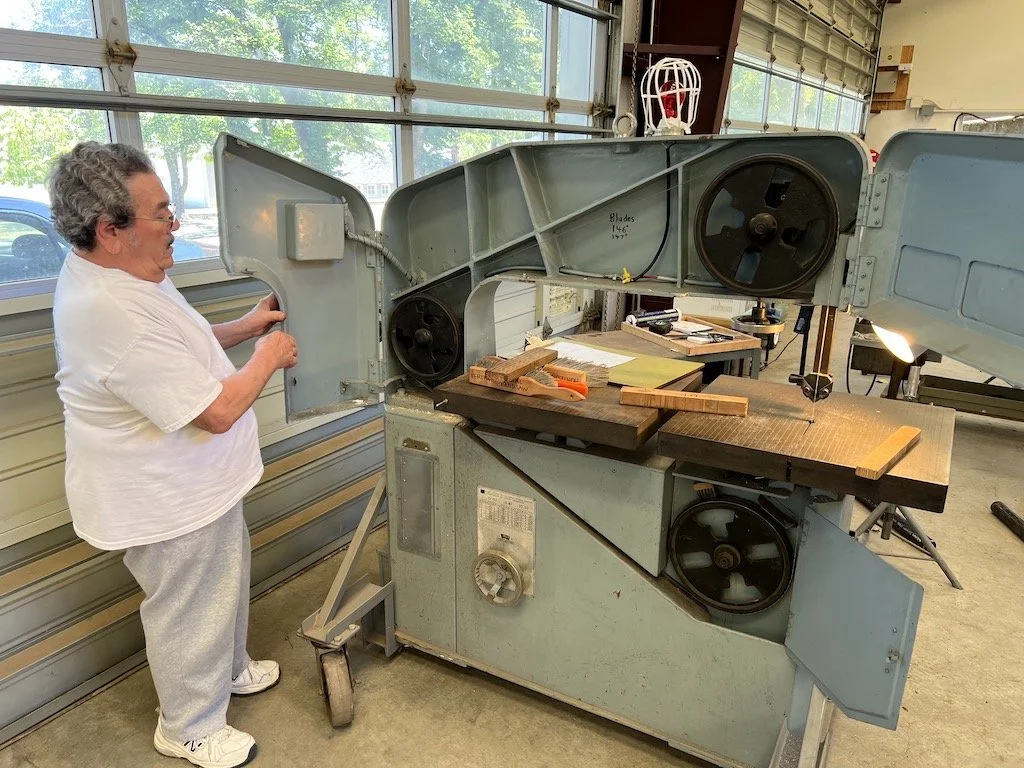 Carl returned and helped Bob install a new blade. 4 hands are better than 2 to tame the blade
