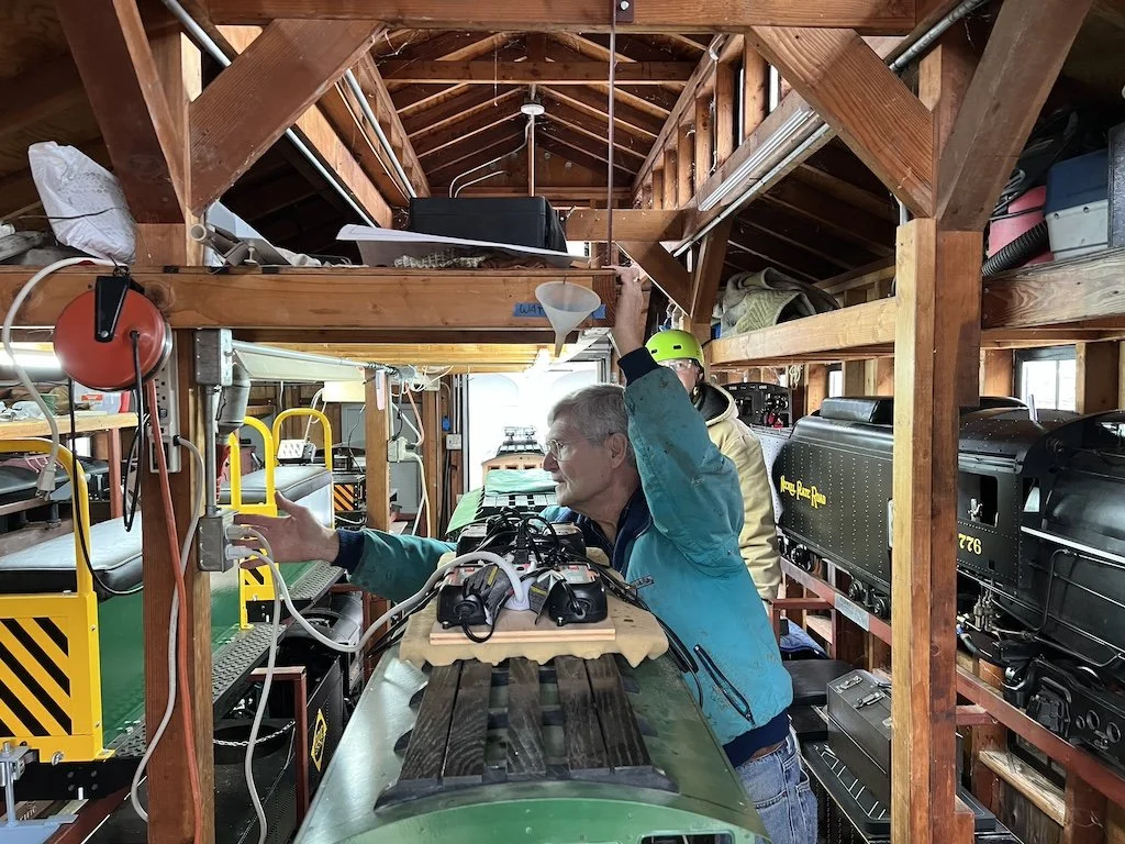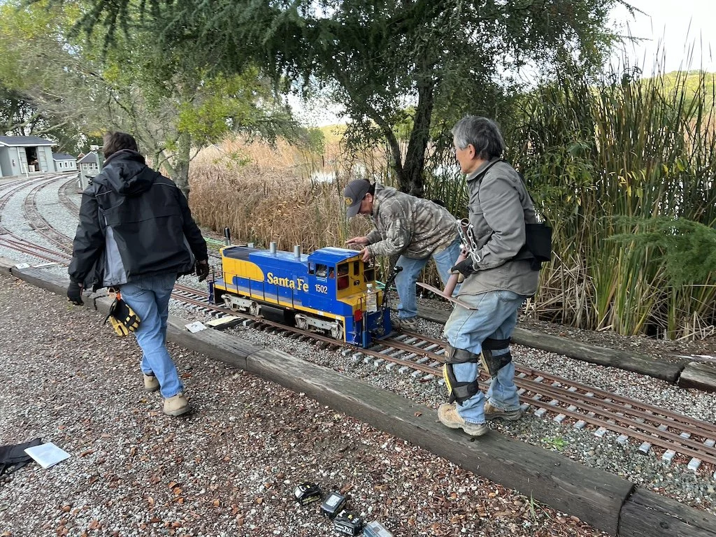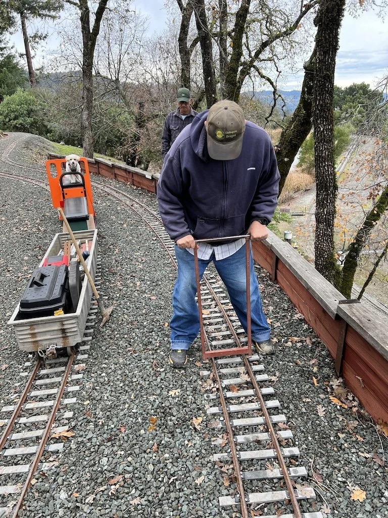 Fair weather allowed us to prep the tracks for the weekend Holiday run. Bruce & Kevin blew the right of way and then we inspected and fixed a number of track / switch issues.