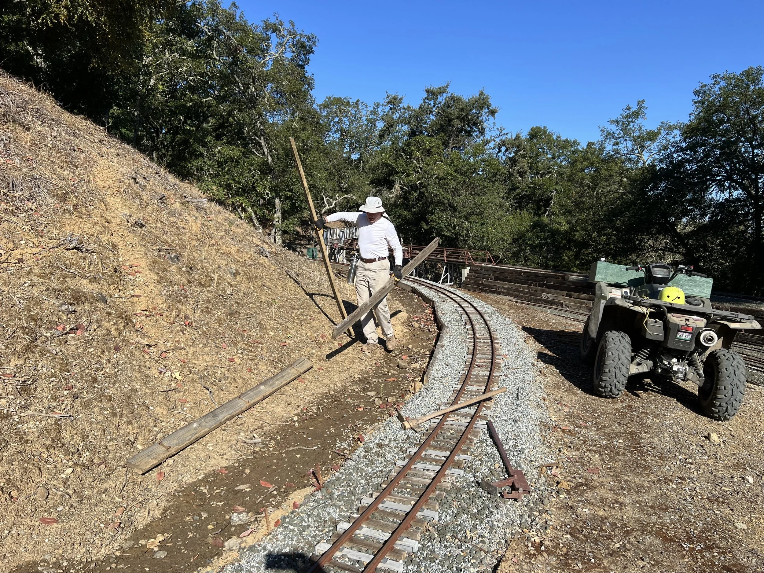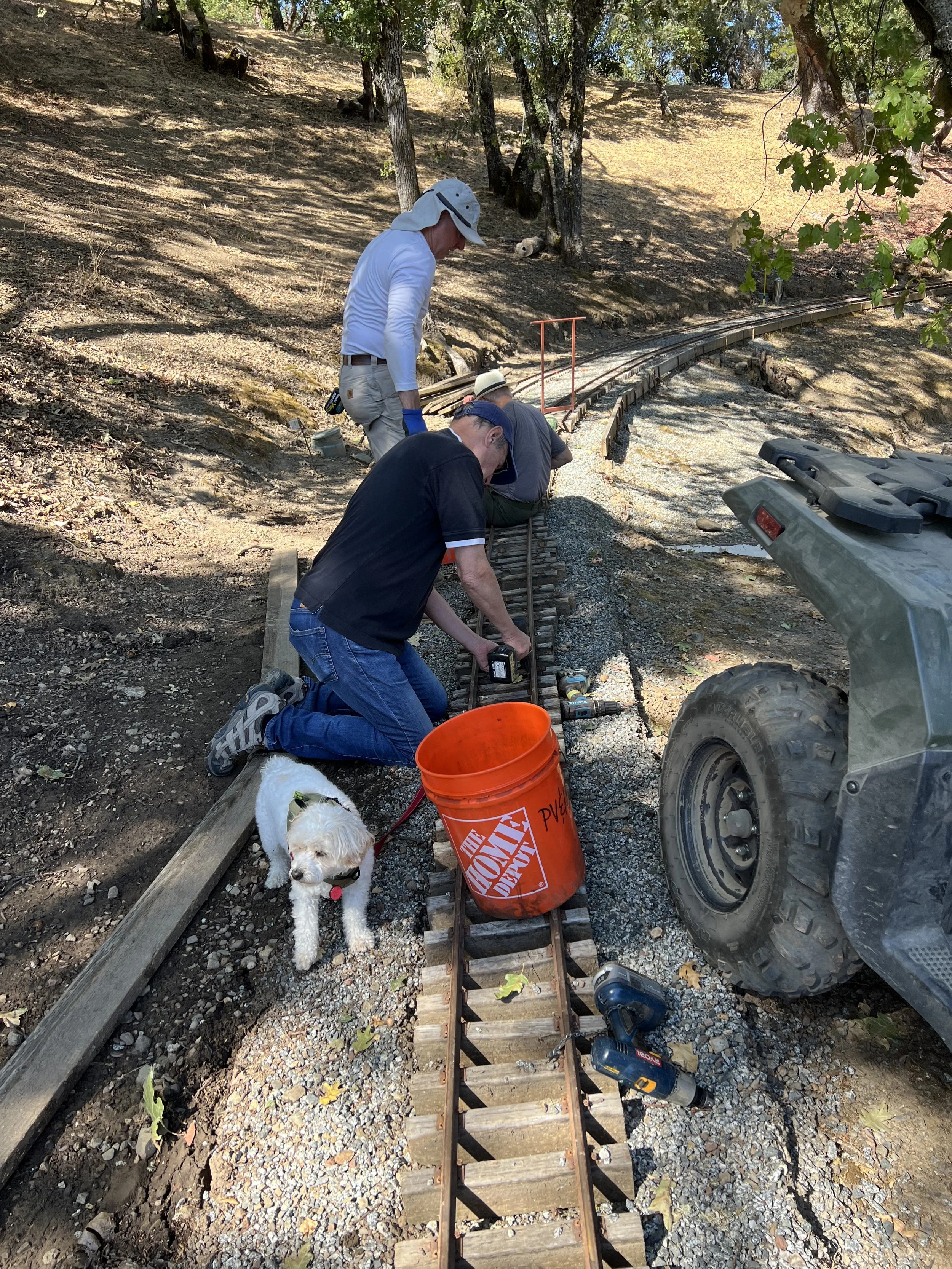 Setting the turntable’s track in place and preparing for the September work weekend were the big projects for the day.