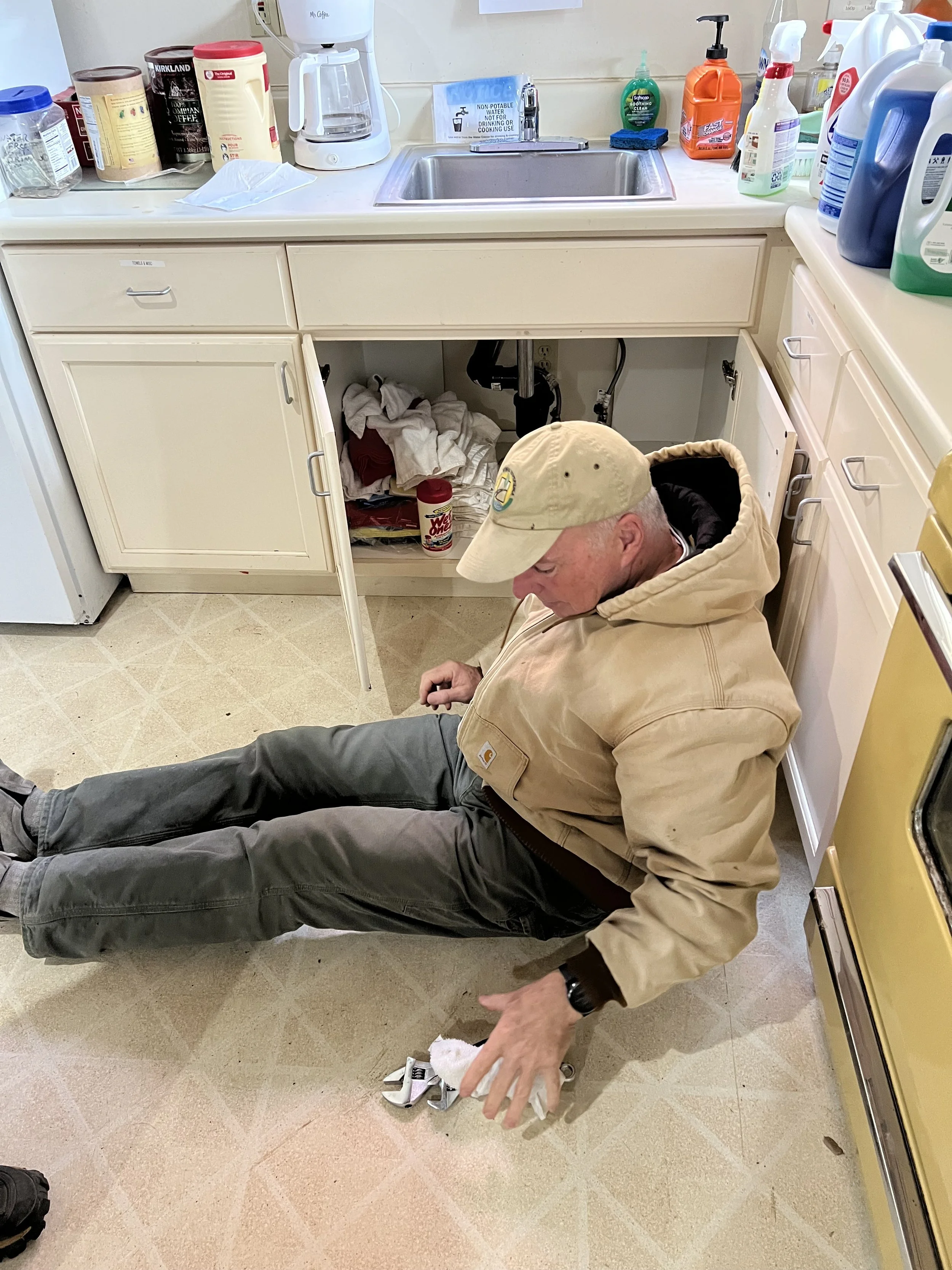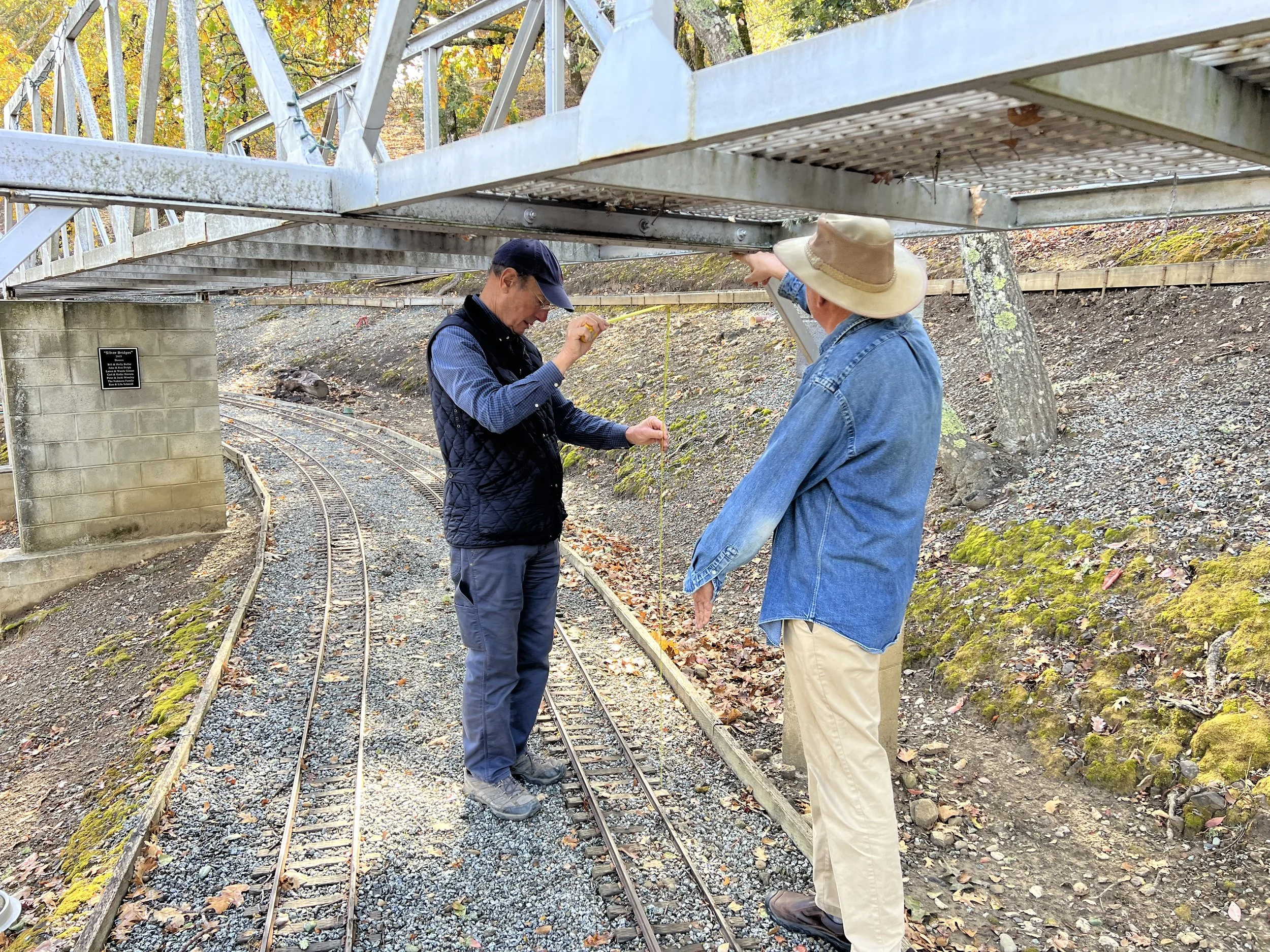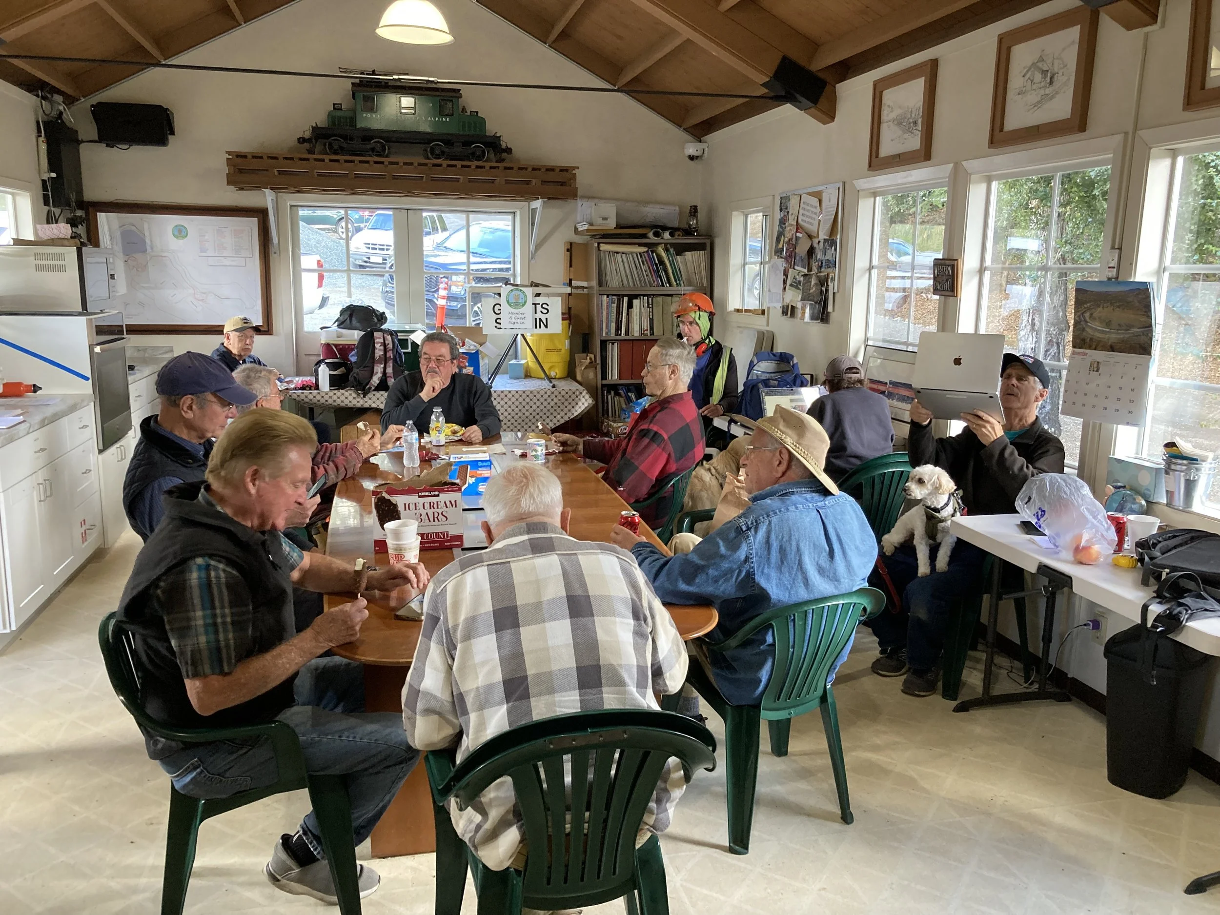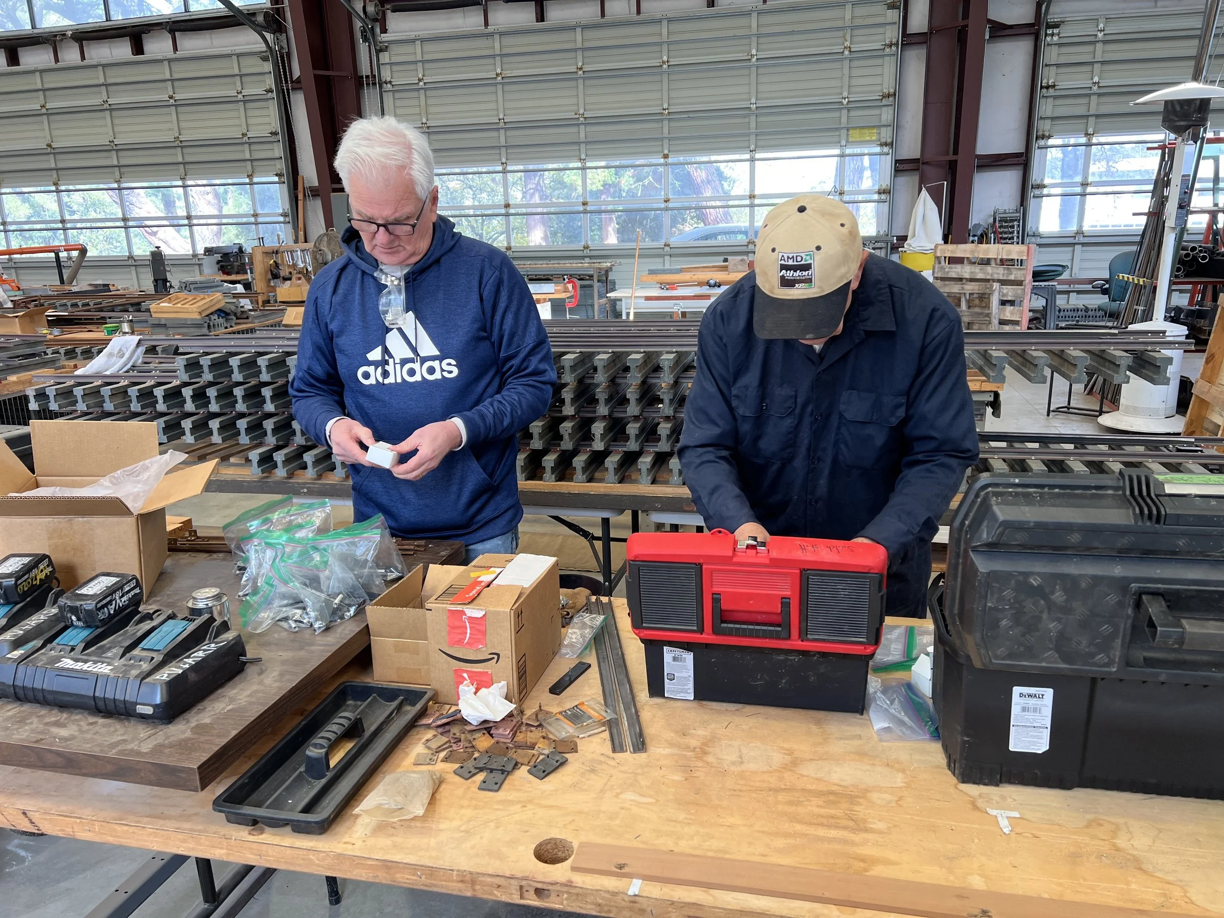 Tom (nice view), Matt, & Dee unload blocks for the roundhouse turntable floor