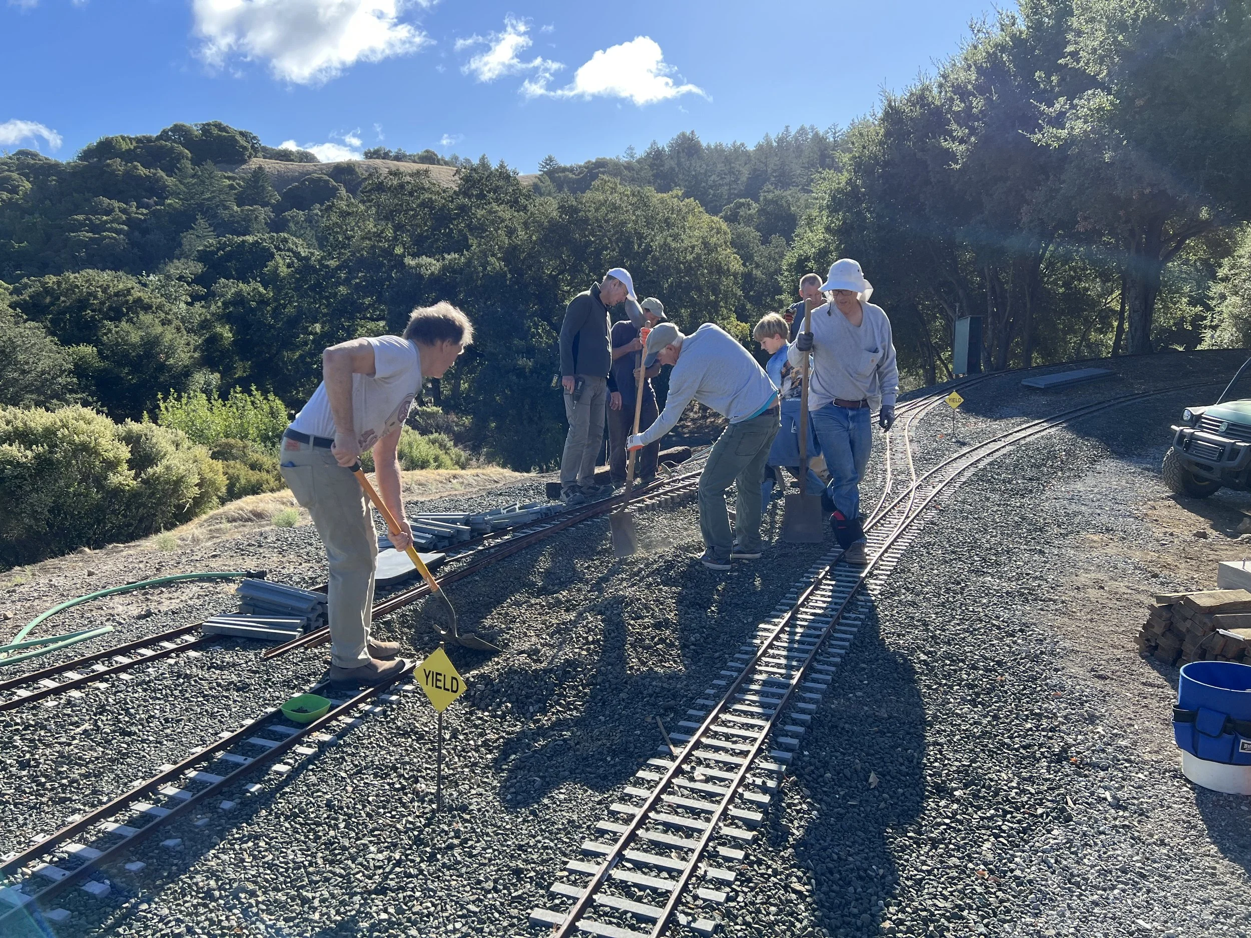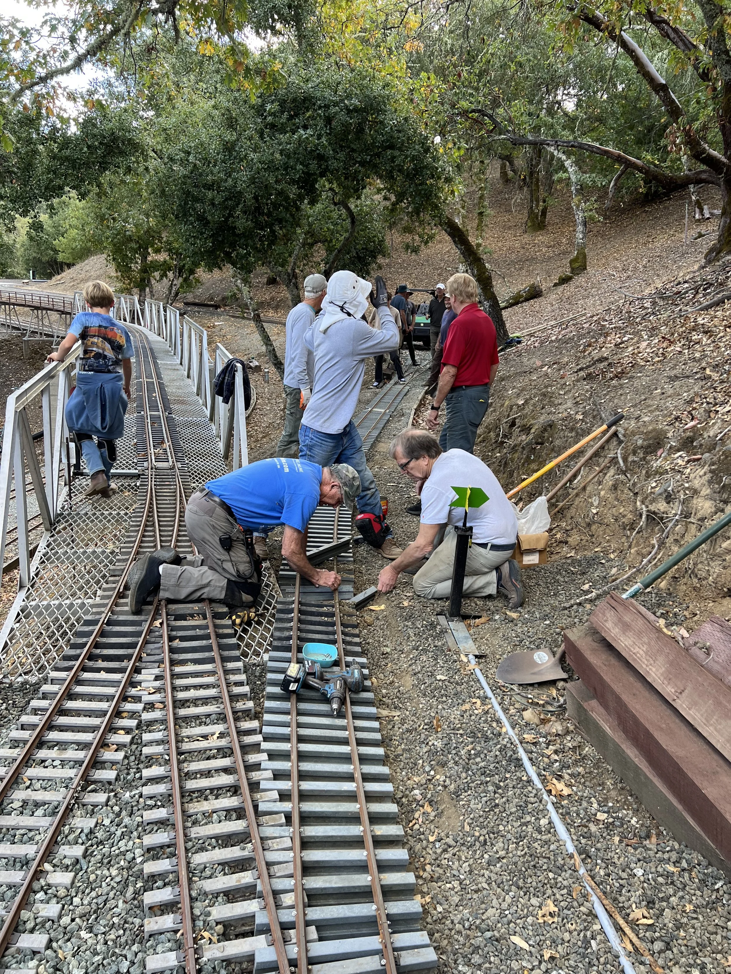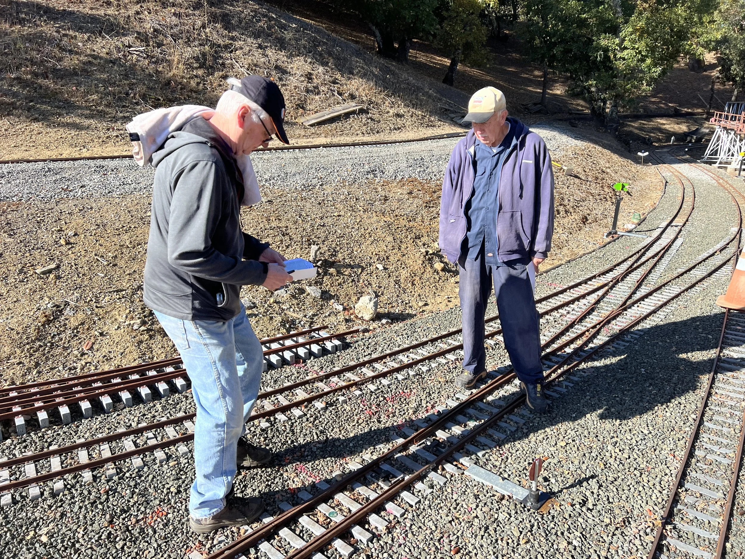 Kevin completed all except one track trouble report. We’ll need to build a small retaining wall by the summit some time next year to solve an annoying ballast leak (down the hill) area.