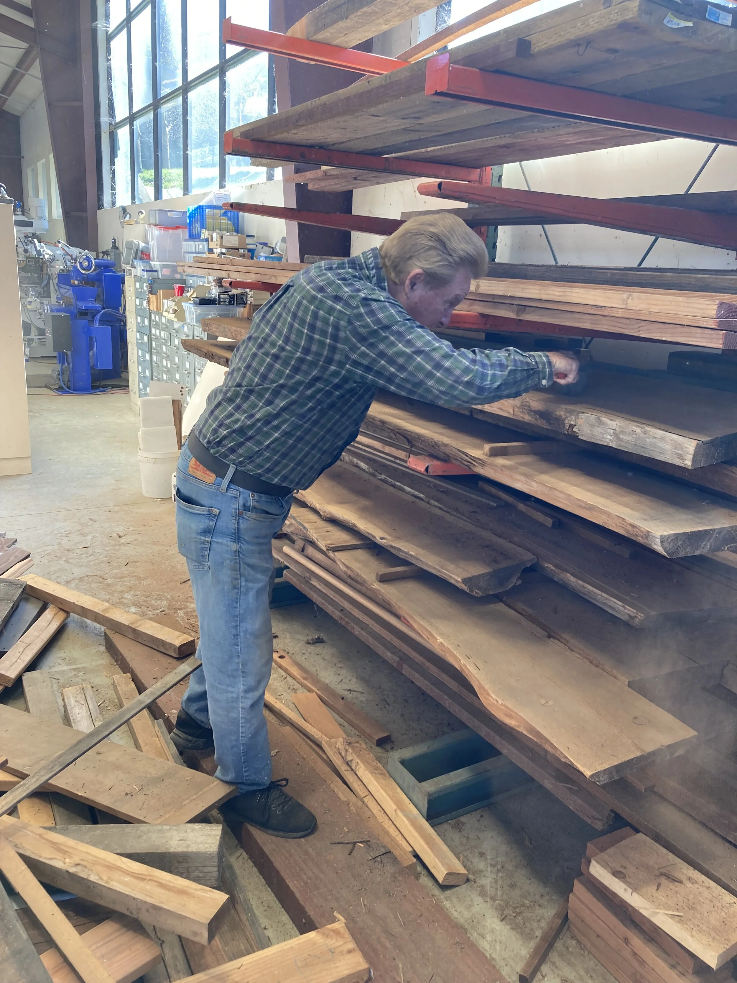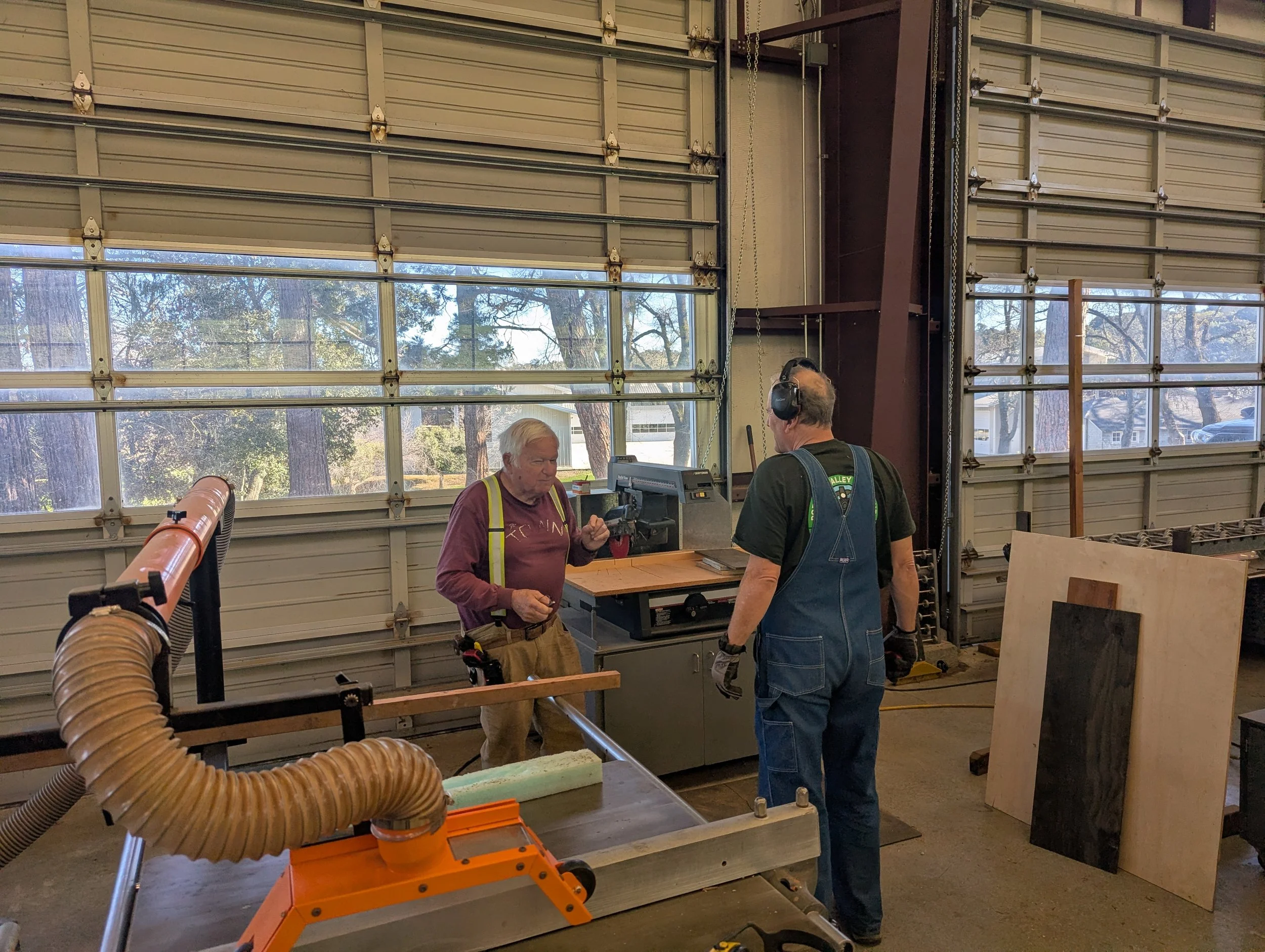 Robert and Mike got us organized for the next steps in building the Roundhouse. Last week the frames went up, Rafters and miscellaneous studs are next. So the team needed to mill 2x4s in various lengths.
