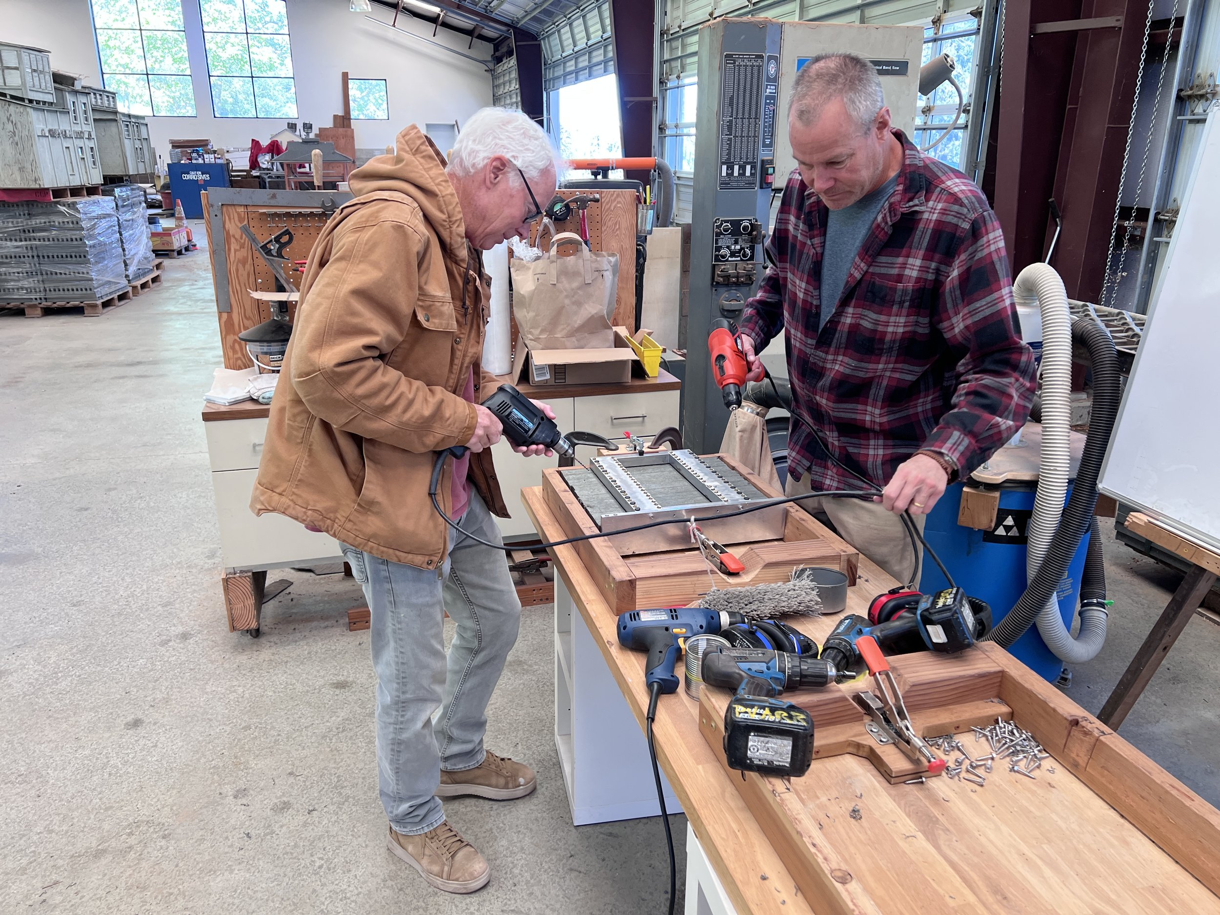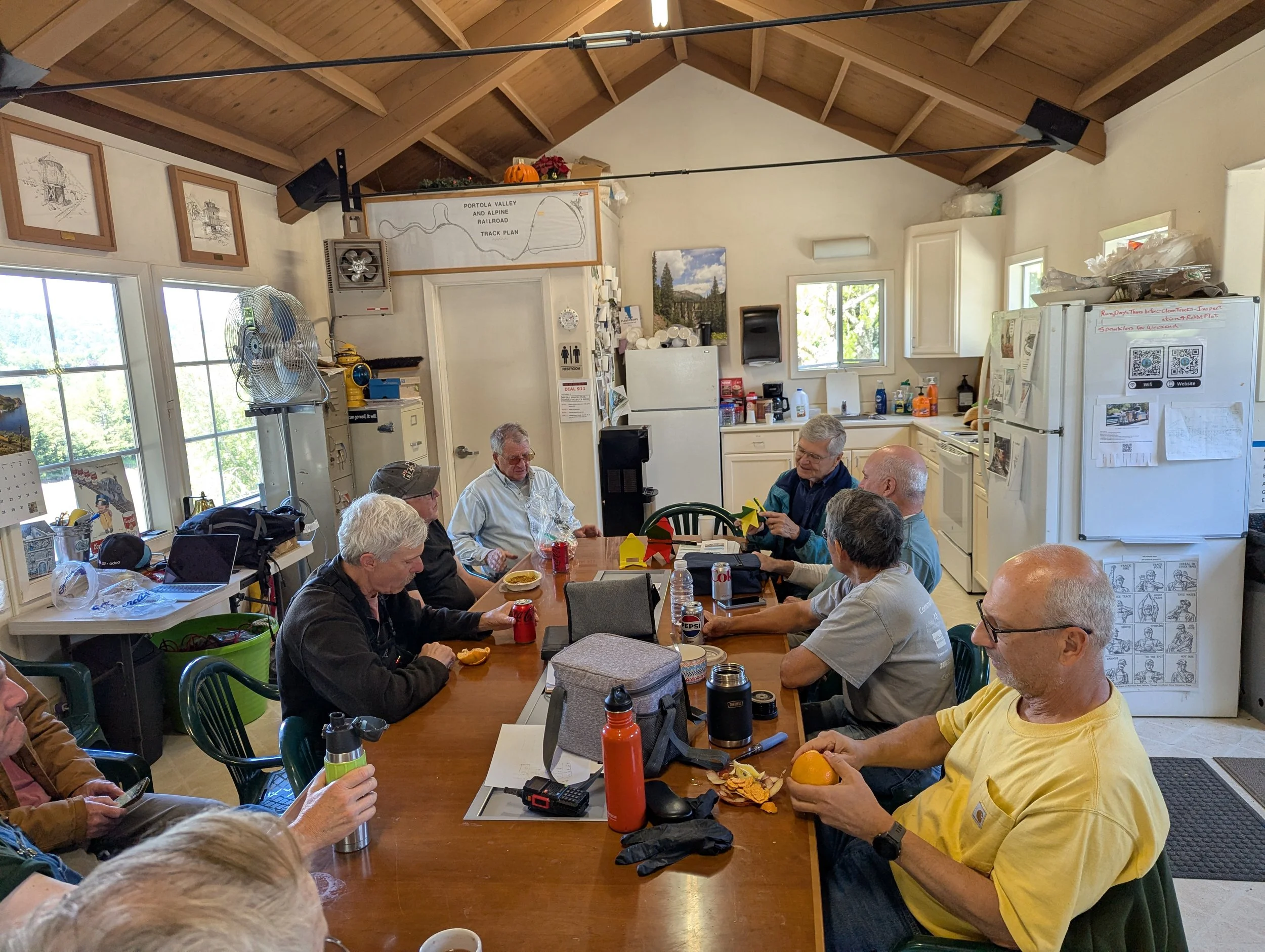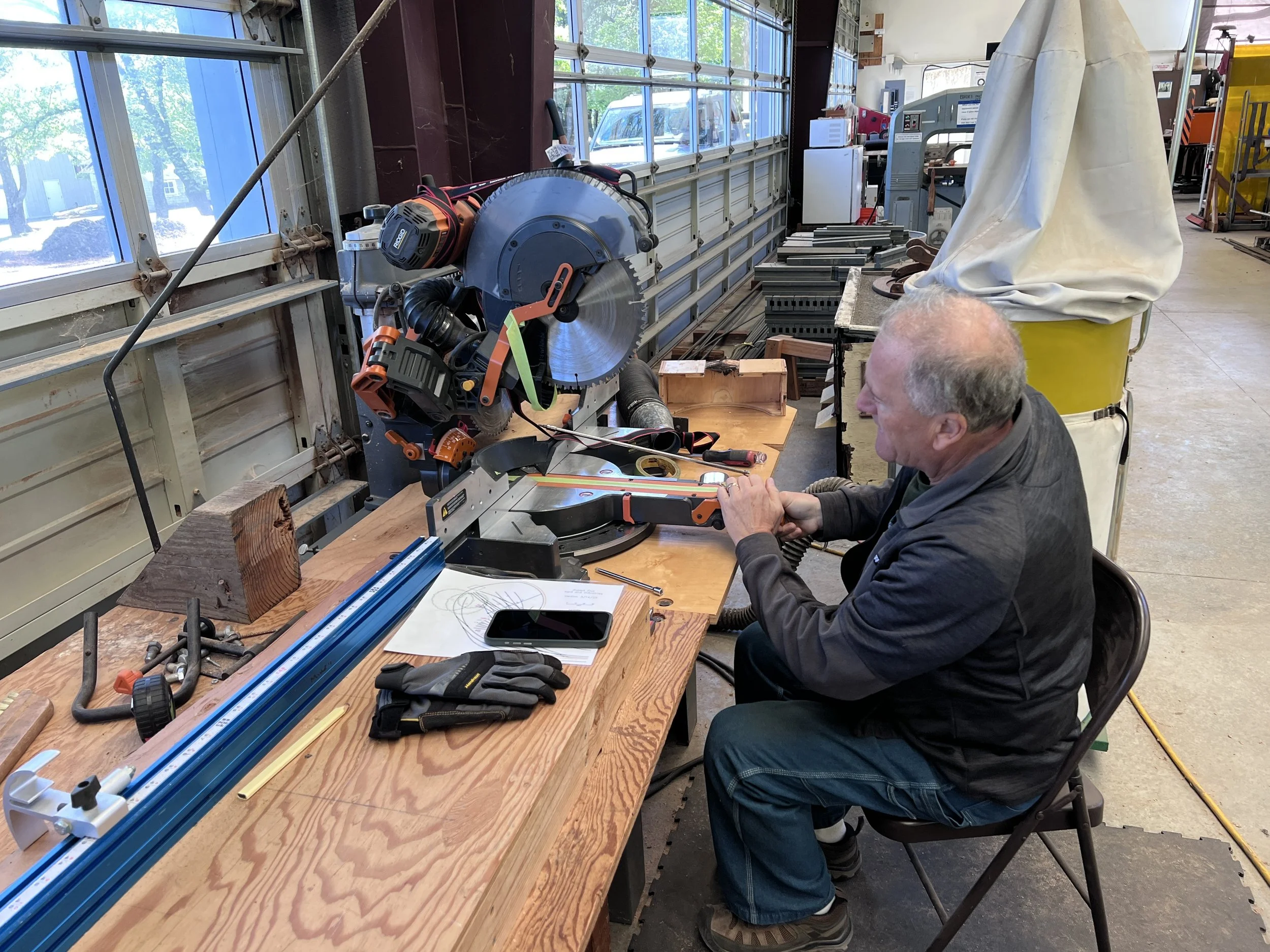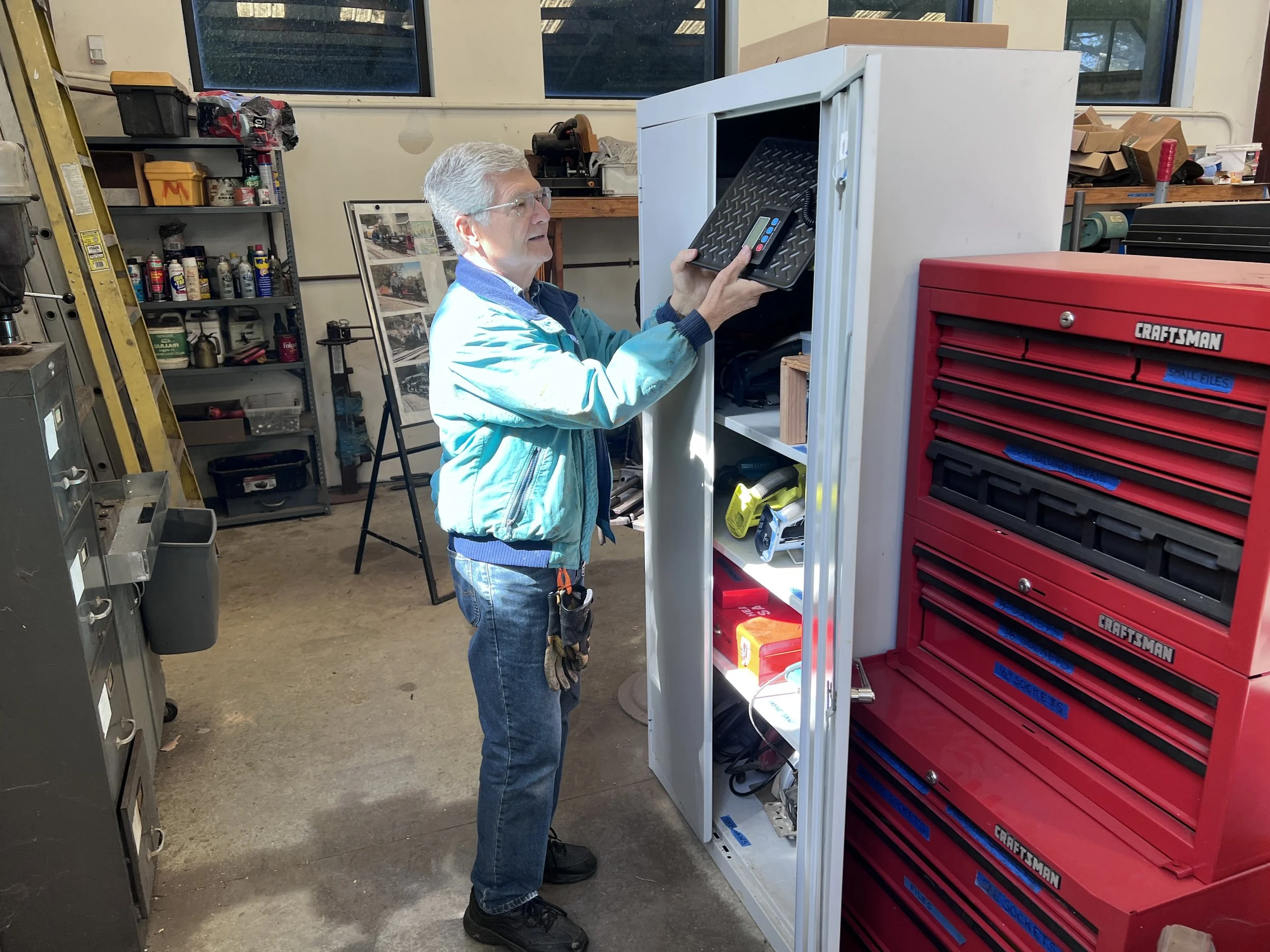 Bob Silverstein April 23, 2026 🛠️ April 23 Workday Bob Silverstein April 23, 2026 Our patron, Jacques LittlefieldJacque’s vision of a 50-year railroad still guides our work to this day. We are all grateful for the opportunity to extend his vision through all of our workday projects. Photos | Videos Photos - click on images for text descriptions and large images View fullsize Here's where Ken hid our new scale. View fullsize Will and Sam built ties in Mike's absence. View fullsize Tom continued to repair the tornado damage to the roof of the building View fullsize Robert cleans up the detritus from drilling the new ties. View fullsize Bob inventoried our collection of ties View fullsize Robert installed a dust collector on the mitre saw. He printed it on his 3D printer. View fullsize Lunch for our small crew at the station house.