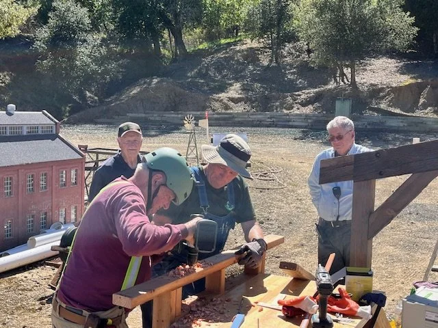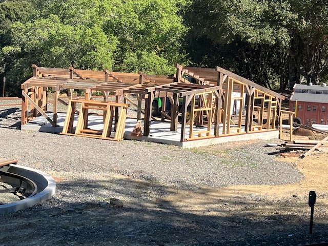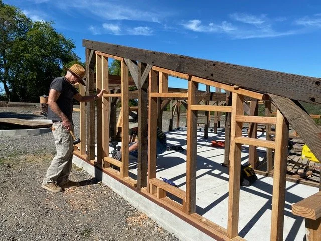 The Roundhouse team is installing the wall frames that define the windows. They built these parts in Building Four over the winter months.