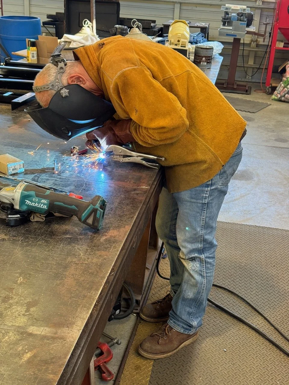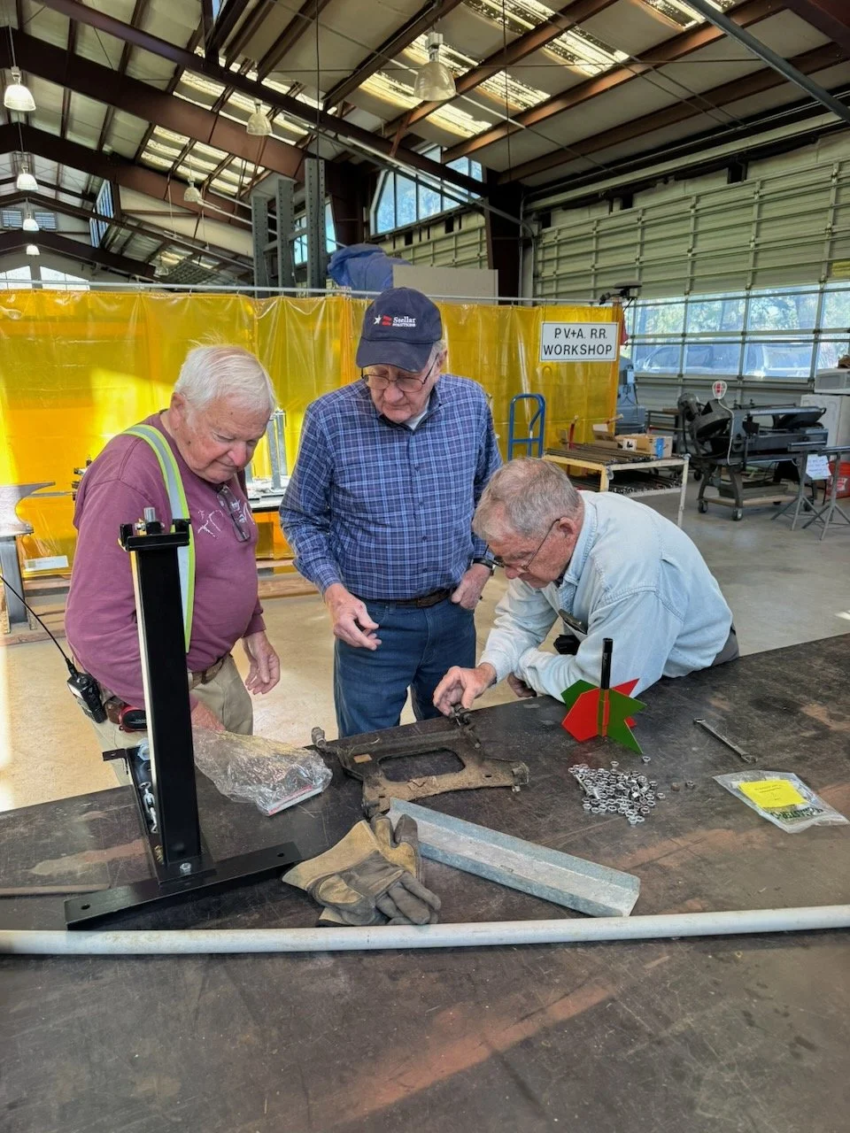 Mike and Robert custom fit a panel while Ed and Bill make sure it's done properly.