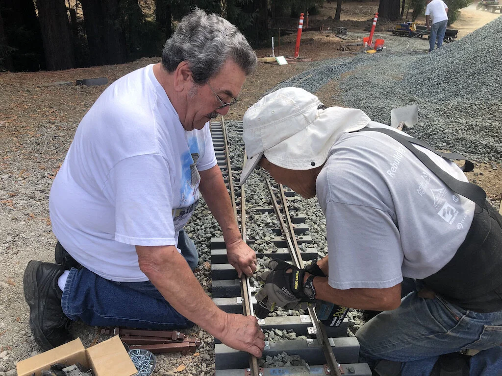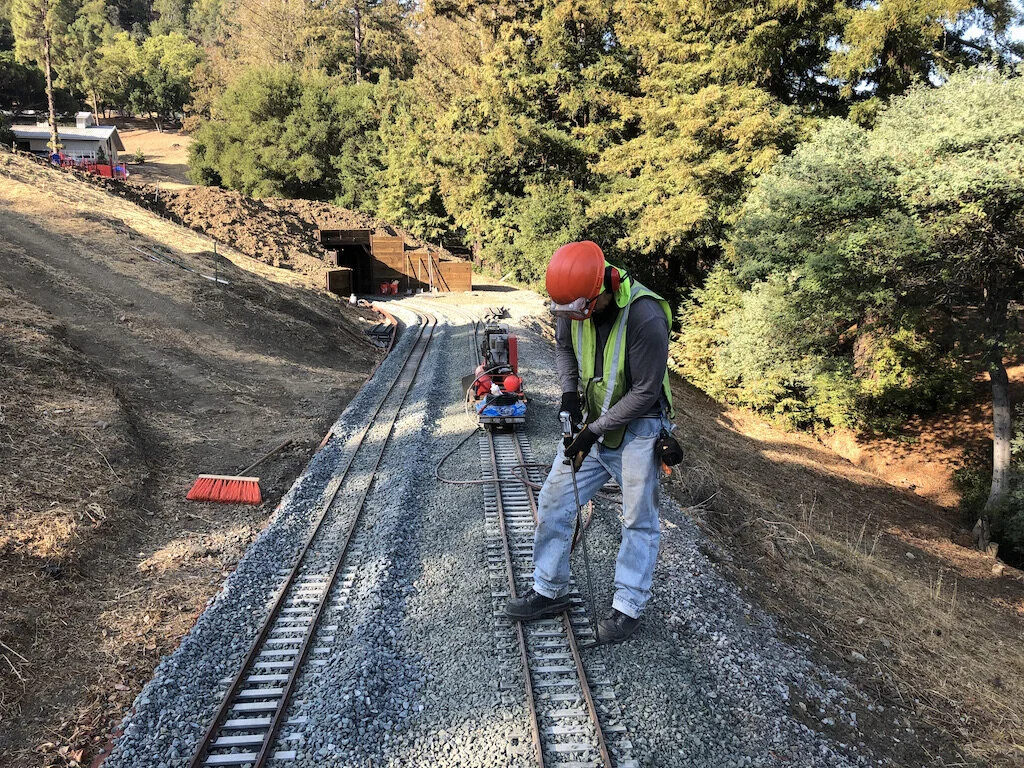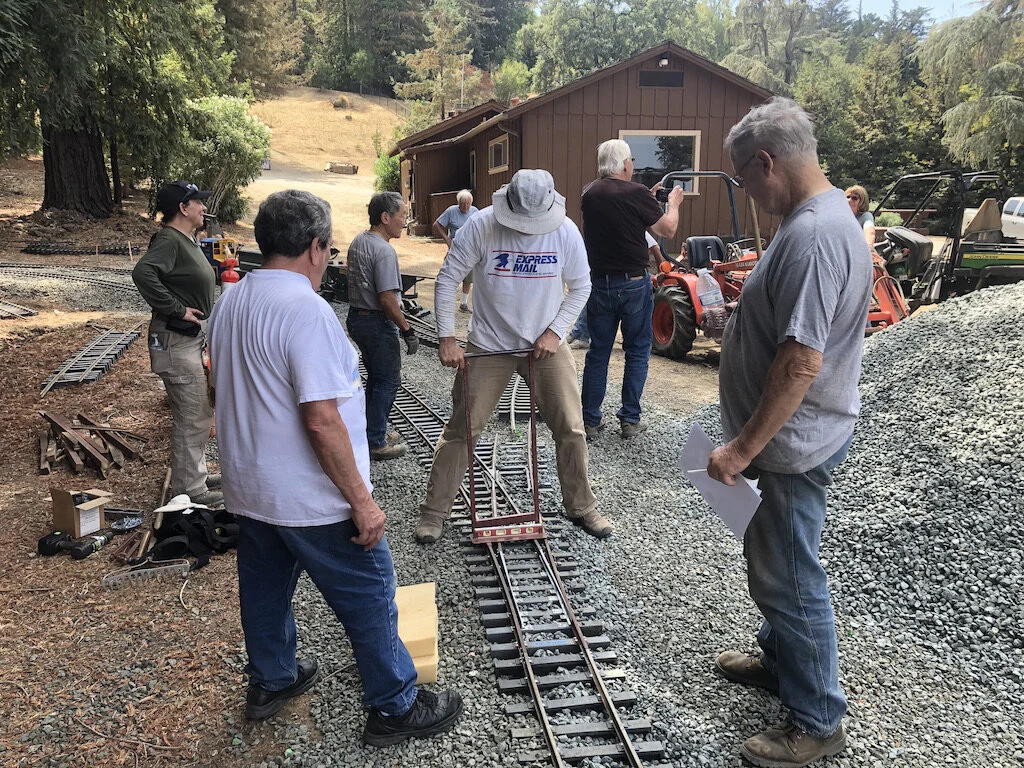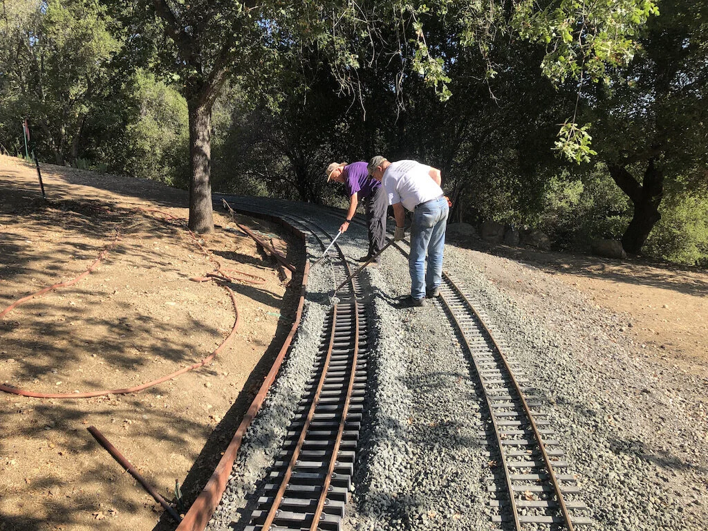 A frenzy of work by the whole team brought us across the Caboose Loop Trestle for the first time. There is lots of ballast work and track leveling left to go but, We can see ourselves being ready for the October meet.